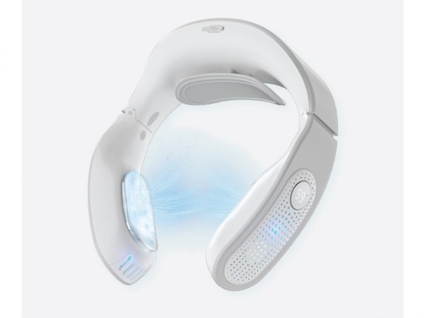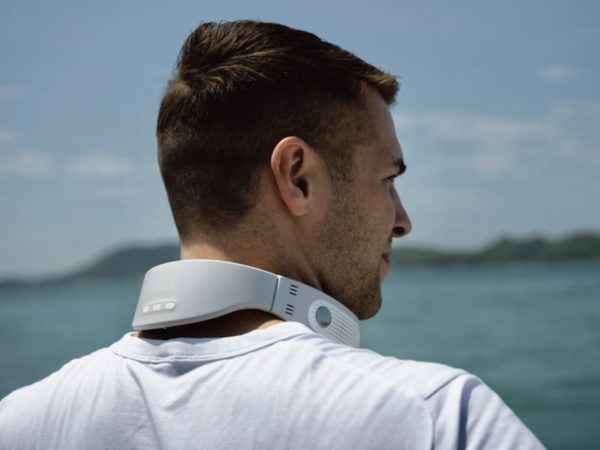 QOOLAはヘッドフォンのようなデザインで、首にかけて使用するウェアラブルタイプ。タービンやバッテリーを内蔵し、首の両サイドから冷気を出して暑くなった体を冷やす仕組みです。