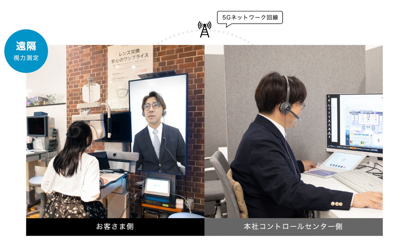 興味深いのは、いまやリモートでの視力測定が可能になっていることだ。全国の店舗に設置された視力測定器と東京本社のコントロールセンターが専用回線で繋がれ、店舗に専門スタッフがいなくとも、遠隔でカスタマーの視力測定を行うことができる。