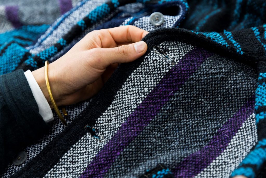 高校生の頃からブーツカットのデニムにボロボロのロックTシャツを着て、ヒッピーみたいなファッションをしていたので元々古い服が好きだったんです。ボロボロのものに格好良さを感じるというか。服以外にも、何に使うでもなくアンティークショールやカーテンを集めたりしていました。リメイクって分解して、地直しして…普通の服を作る3倍の時間がかかるんです。普通より時間コストがかかるからこそ、他の部分ではコストをかけないように考えないといけなくて。お菓子食べてゴロゴロするような無駄な時間を究極まで削ぐことで、「ここにポケット増やしてみようかな?」という風に制作に関する“無駄な時間”を増やしています。