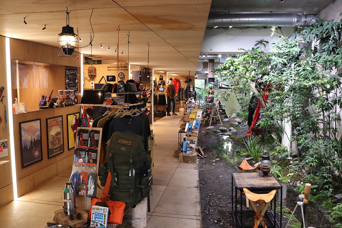 2021年1月、まいせん通り沿いにオープンした旗艦店。“自然と人の融合”というコンセプトのもと、表参道にありながら、自然を感じながらアウトドアを疑似体験できる体験型アウトドアストア。店内に小川やリアルなフィールドを作り、実際に道具を試してショッピングを楽しめる。北欧や北米のアイテムを中心にセレクトされたラインナップで、アウトドアシーンはもちろん、お家で使える調理器具など様々な道具を取り揃えている。