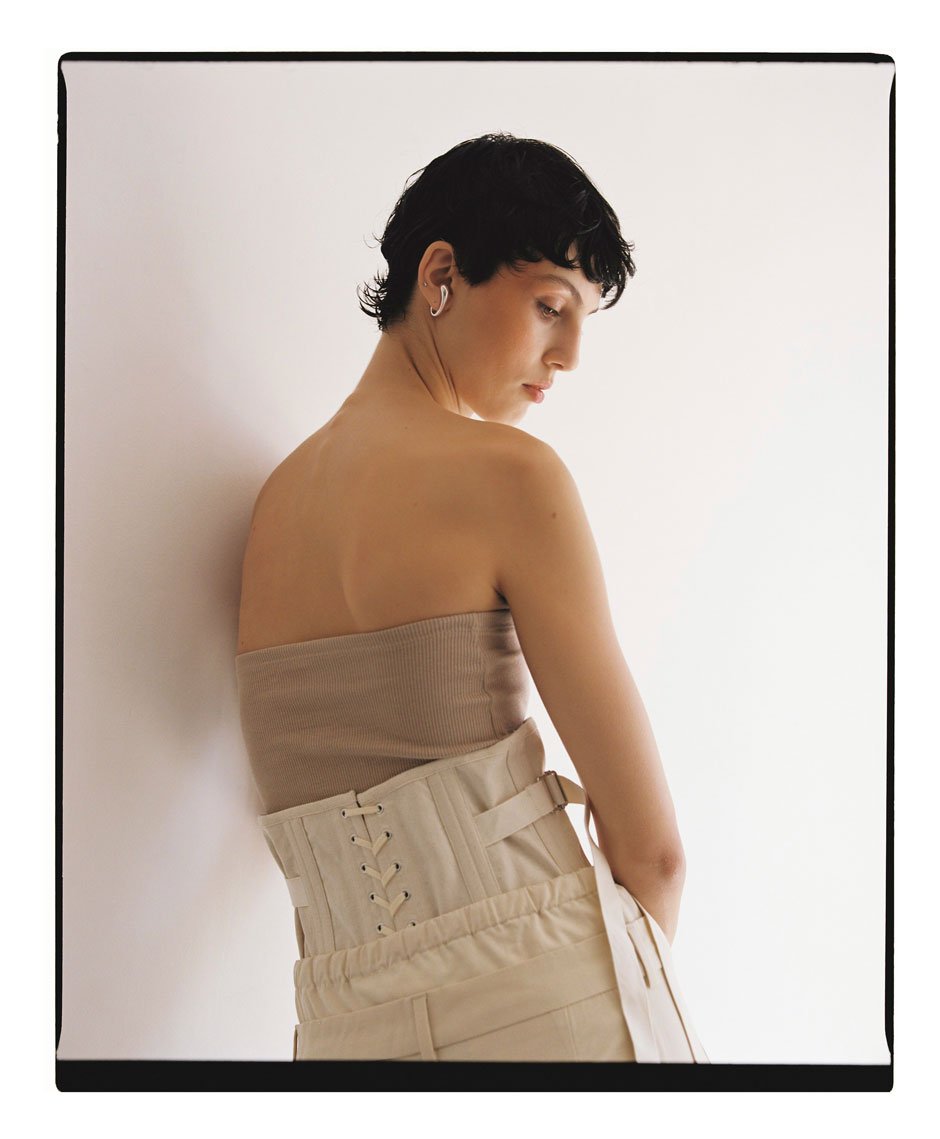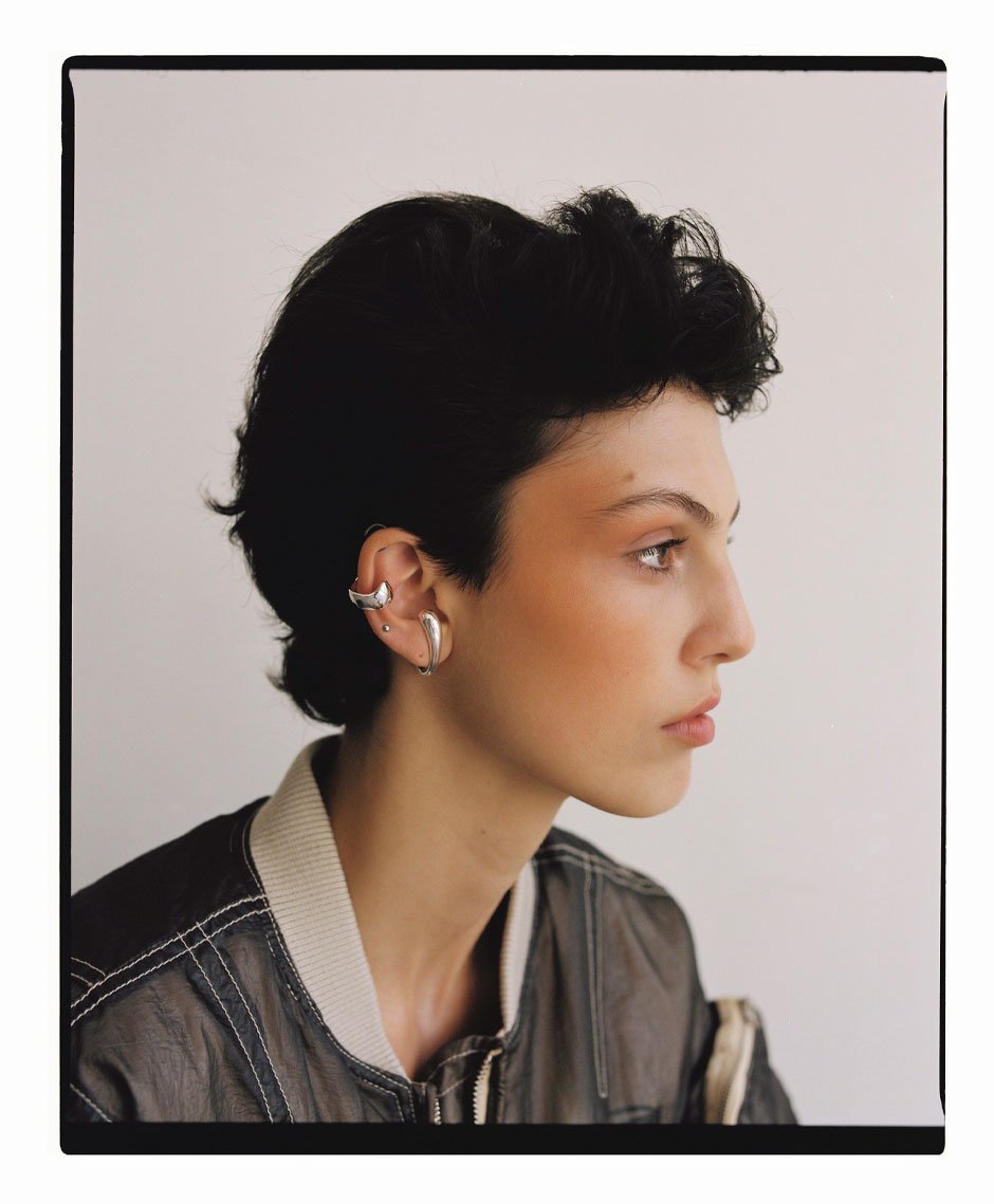 top and trousers by SPORTMAX, earcuff by AMBUSH