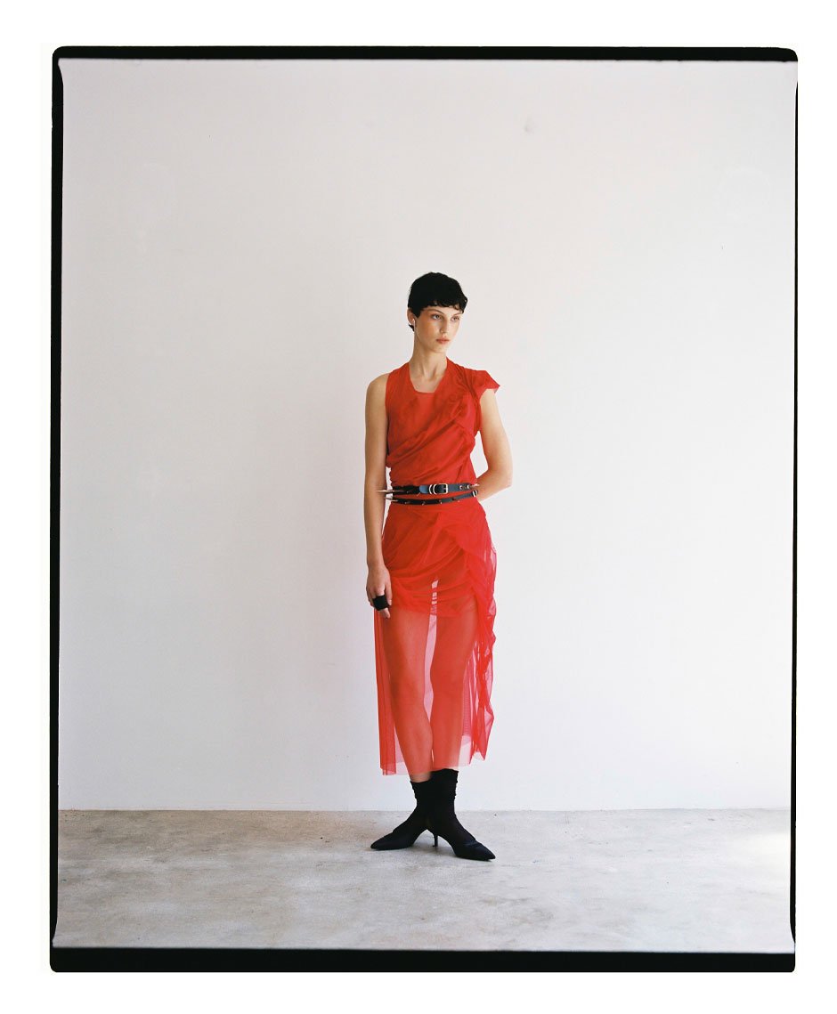 dress by MAISON MARGIELA, shoes by BIMBA Y LOLA, earcuff by AMBUSH, belt stylist’s own