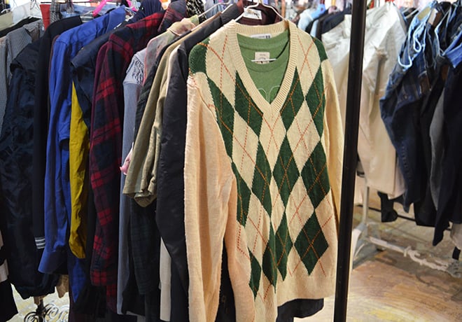 店内のアイテムはジャンル分けせずに並べているという。「あえてカテゴリーを作らずに並べています。そうすることで、自分の普段行かないような店にあるアイテムに手を触れてみたりすることができます。また、探さないと見つからないものもあるので、宝探しのような感覚で洋服を楽しめると思います。1〜2時間くらい、ゆっくりアイテムを選ばれる方もいますよ。コーディネーターがいるので、アイテム選びに悩んだら気軽に相談してください! 着こなしが想像つきにくいアイテムは、コーデをご提案します」と三和さん。
