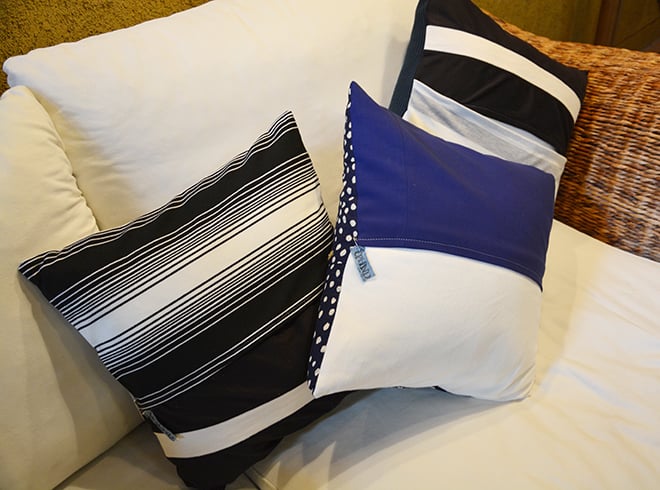 古着を数枚組みあわせて作ったクッションカバー(¥1,800)