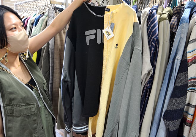 「破れている物でも大丈夫です。その破れや汚れをファッションとして楽しまれる方がいるので、ぜひ気軽に持ち込んでください。お客様が『着ないかもな』って思った服に、どうしたらもう一度スポットライトが当たるのかを考えるのが私たちの仕事です 」と三和さん。