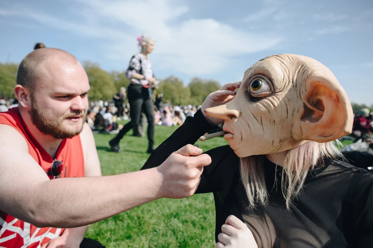 ロンドン公認のハイドパークでの4/20イベントは、ここ2年間、コロナのパンデミックによって中止されてきた。それでもウィード愛好家たちは2021年、少人数でこの公園に集まり、ドラッグを吸い、スーパーで買ったスナックを食べるのをやめなかった。今回僕は冷静な判断力と(ウィードの効果のひとつとして知られる極度の〈空腹感〉に備えて)モンスターマンチ数袋を携え、今年のイベントの調査に向かった。