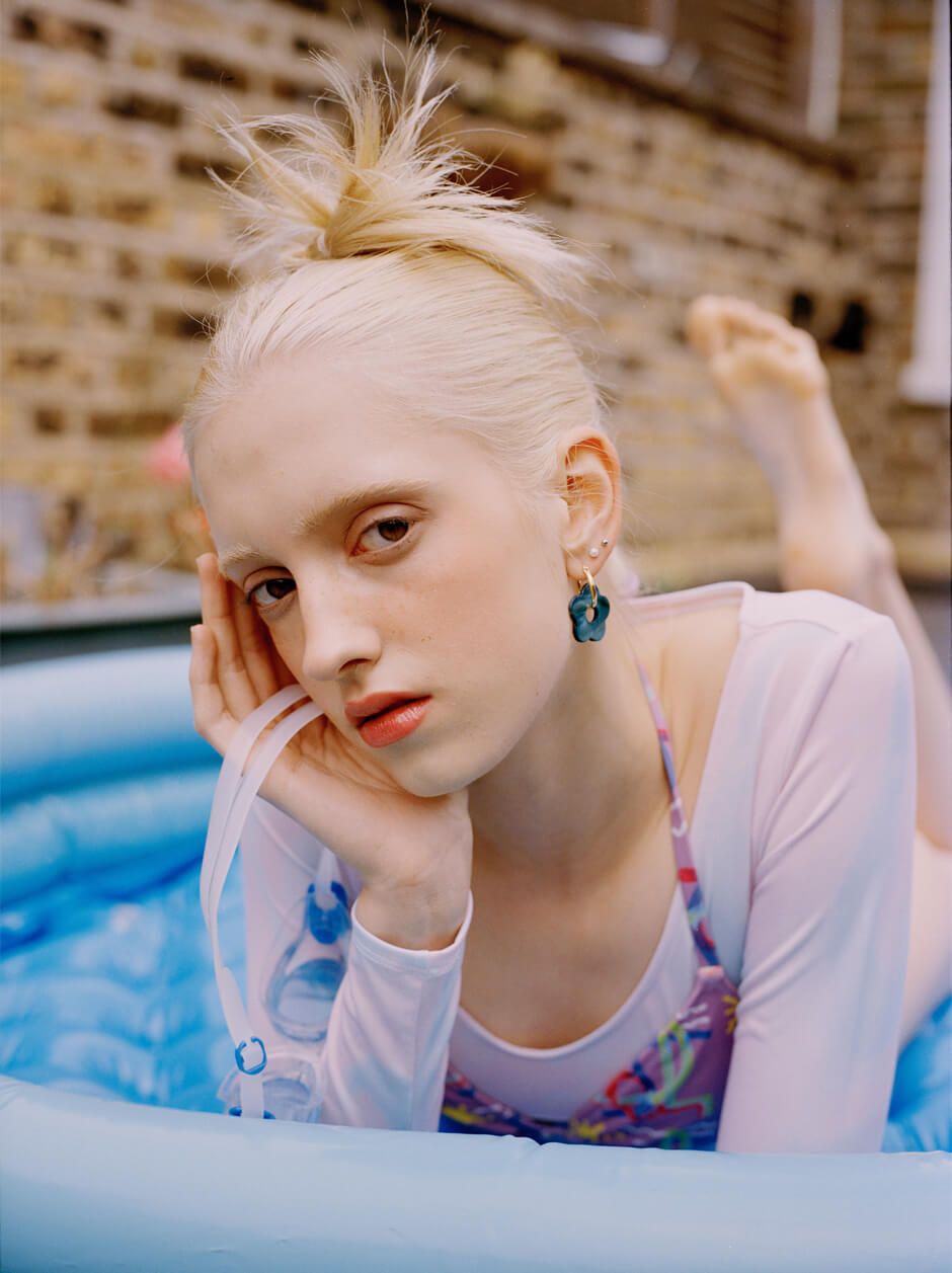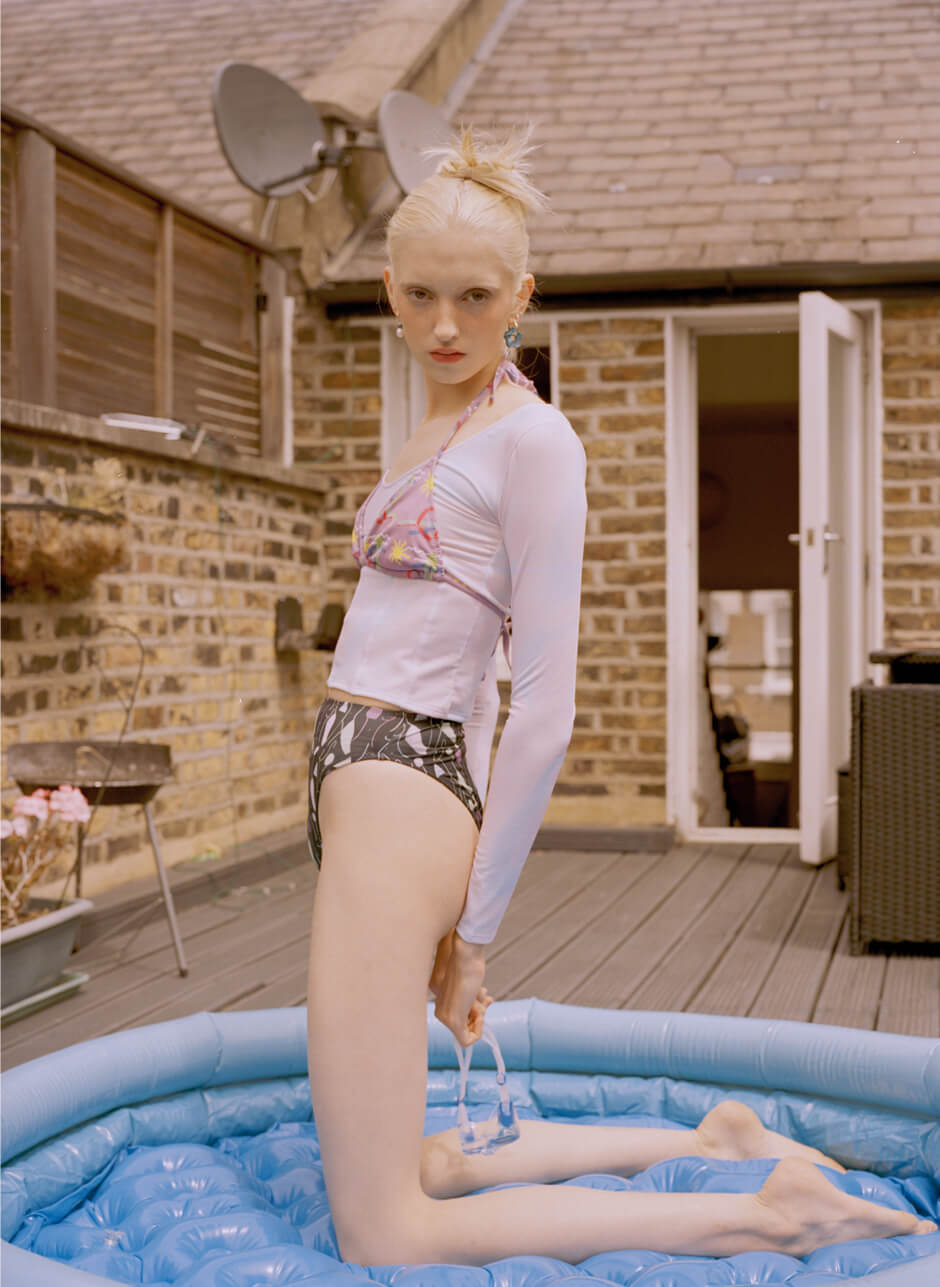 swimwear and top by BETTY & MOIRA, earrings by ALISON FERN JEWELLERY