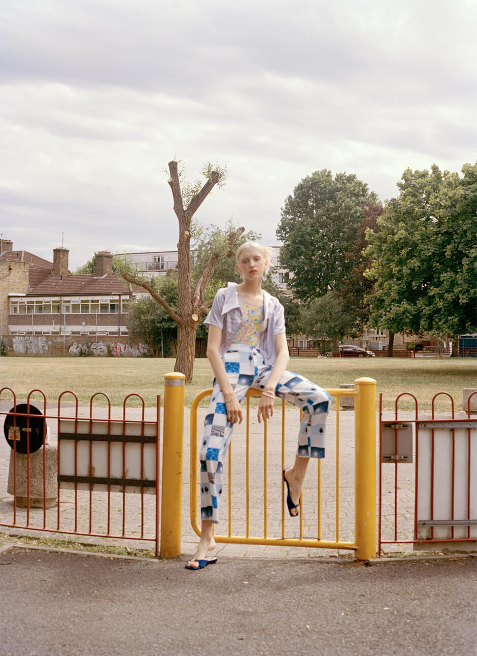 top by FAM IRVOLL, trousers by DASKA, sunglasses stylist’s own