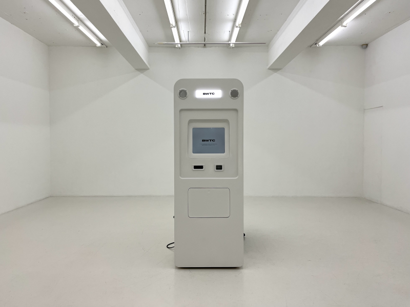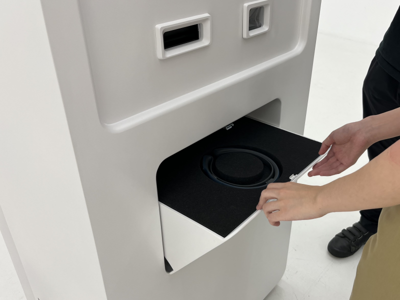 この真っ白なボックスが、脳波の自動買い取り機。近未来感漂うその姿に、少し心拍数が上がります。