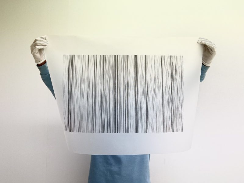 コネルの出村氏によると、絵画としての美しさや線形の珍しさなどをもとに値付けをおこなうのだそう。ドキドキしながらサイトを確認してみたところ、私の脳波絵画には、7200円の値がついていました。