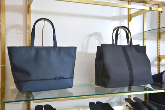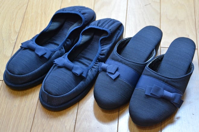 創業時からの人気商品のスリッパは、無人店舗でも売れ筋商品だという。ヒールがあることと、生地にドレスによく使われるシャンタンを使っているため、上品な印象だ。