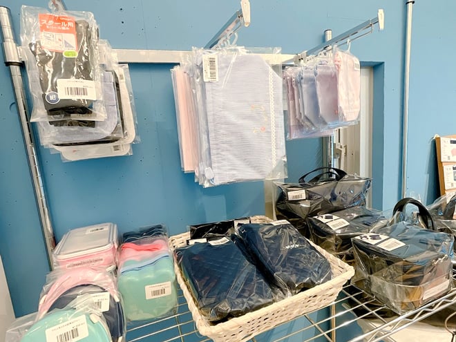 「たとえば、小さい巾着やサブバッグ、お母様用のバッグ、子ども用のワンピース、通学用のスクールスカートなどインターネットショップでよく売れている商品を棚やラックに並べて販売しています」(曽我さん)。