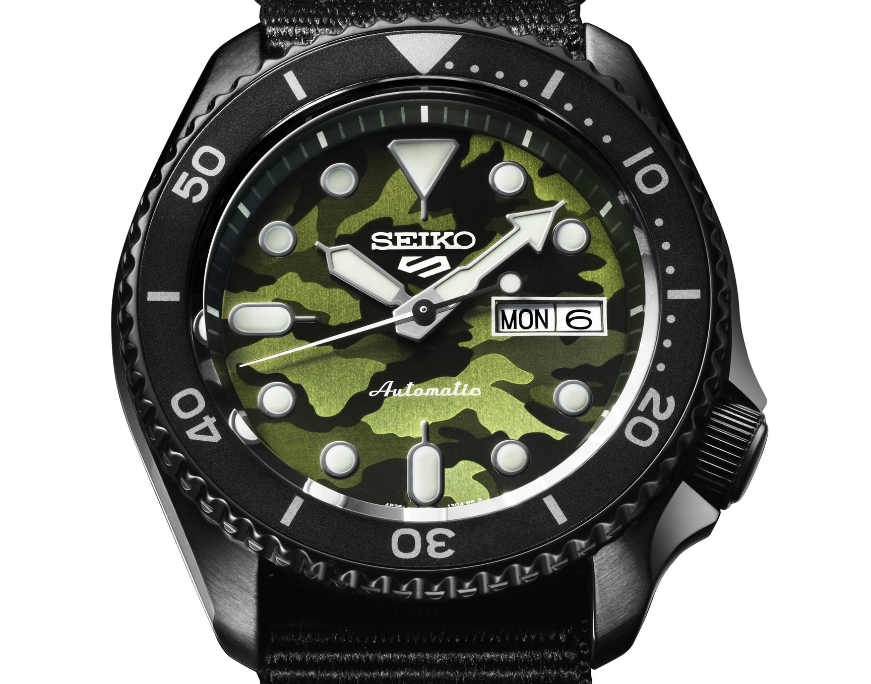 また、同日に「SKX Street Style」シリーズから新作モデルが登場。限定モデルと同様にカモフラージュパターンを採用し、黒とグリーンの2色を取り入れた。ブラックのケースにナイロンストラップを組み合わせ、ストリートシーンにマッチするスタイルに仕上げた。価格は税込3万8500円。