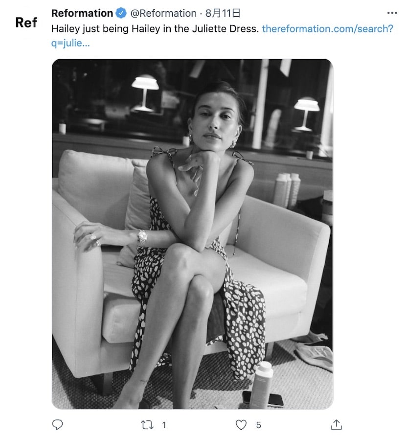 実はこれもReformationの戦略の一つ。セレブたちが日常的にブランドの服を着用しているような様子をアップすることで、セレブがReformationの衣服を「当たり前のように」選んでいるような雰囲気を醸成している。