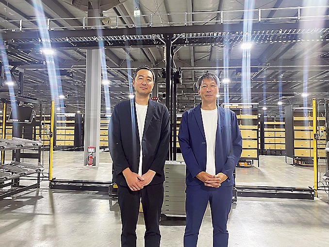 林正武上席執行役員ロジスティクス本部長と森泰憲国内物流管理部シニアマネージャー(左)