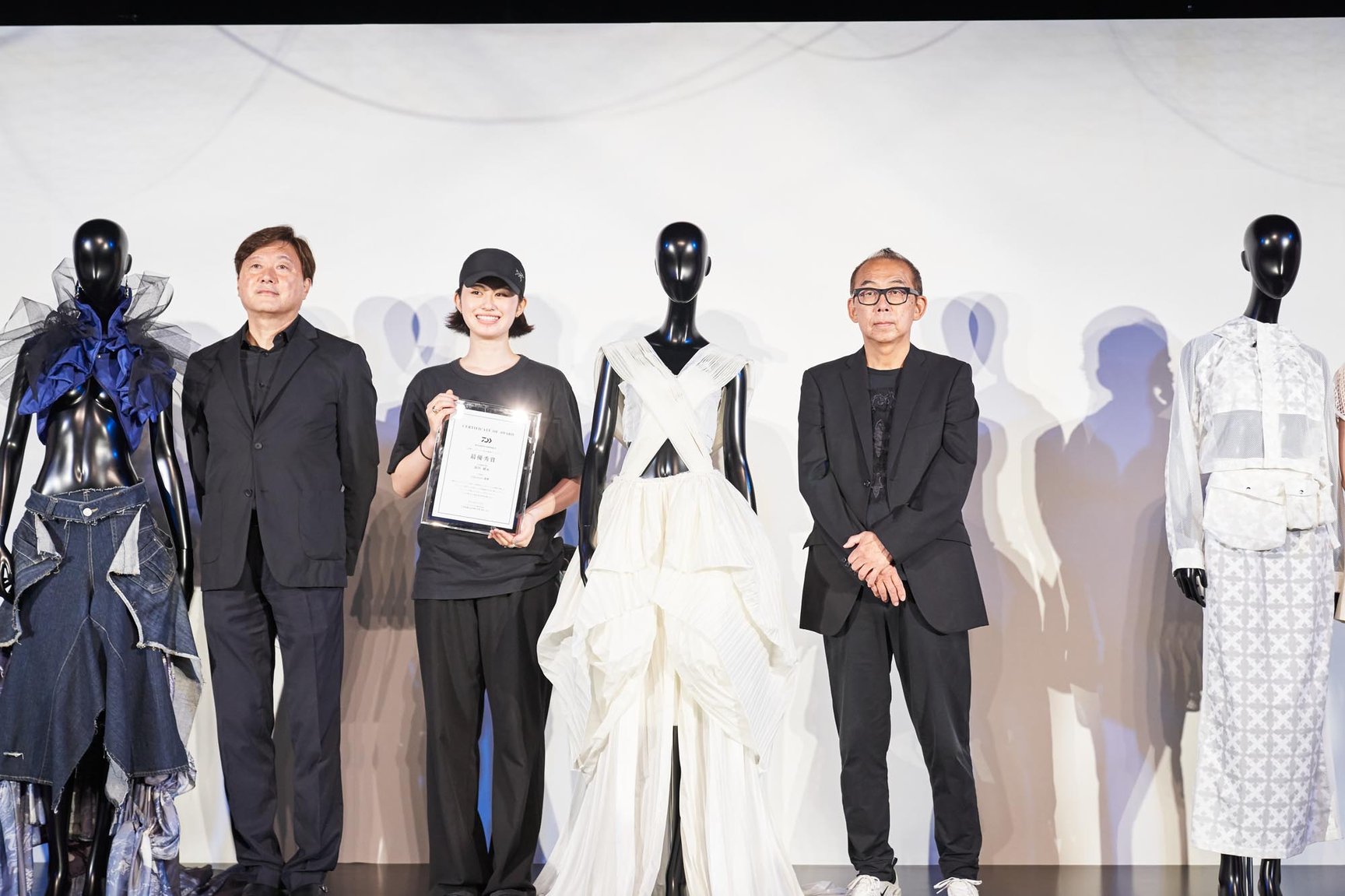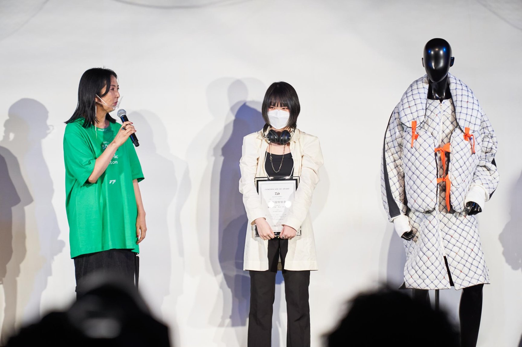 イベント初日となる9月1日には、表彰イベントを実施。モデル兼タレントで環境省サステナビリティ広報大使を務めるトラウデン直美、一般社団法人日本ファッション・ウィーク推進機構(JFWO)事務局長の古茂田博、D-VECクリエイティブ・ディレクターの佐々木勉など5人の審査によってサステナビリティ・デザインなど様々な観点から上位5作品を選出した。