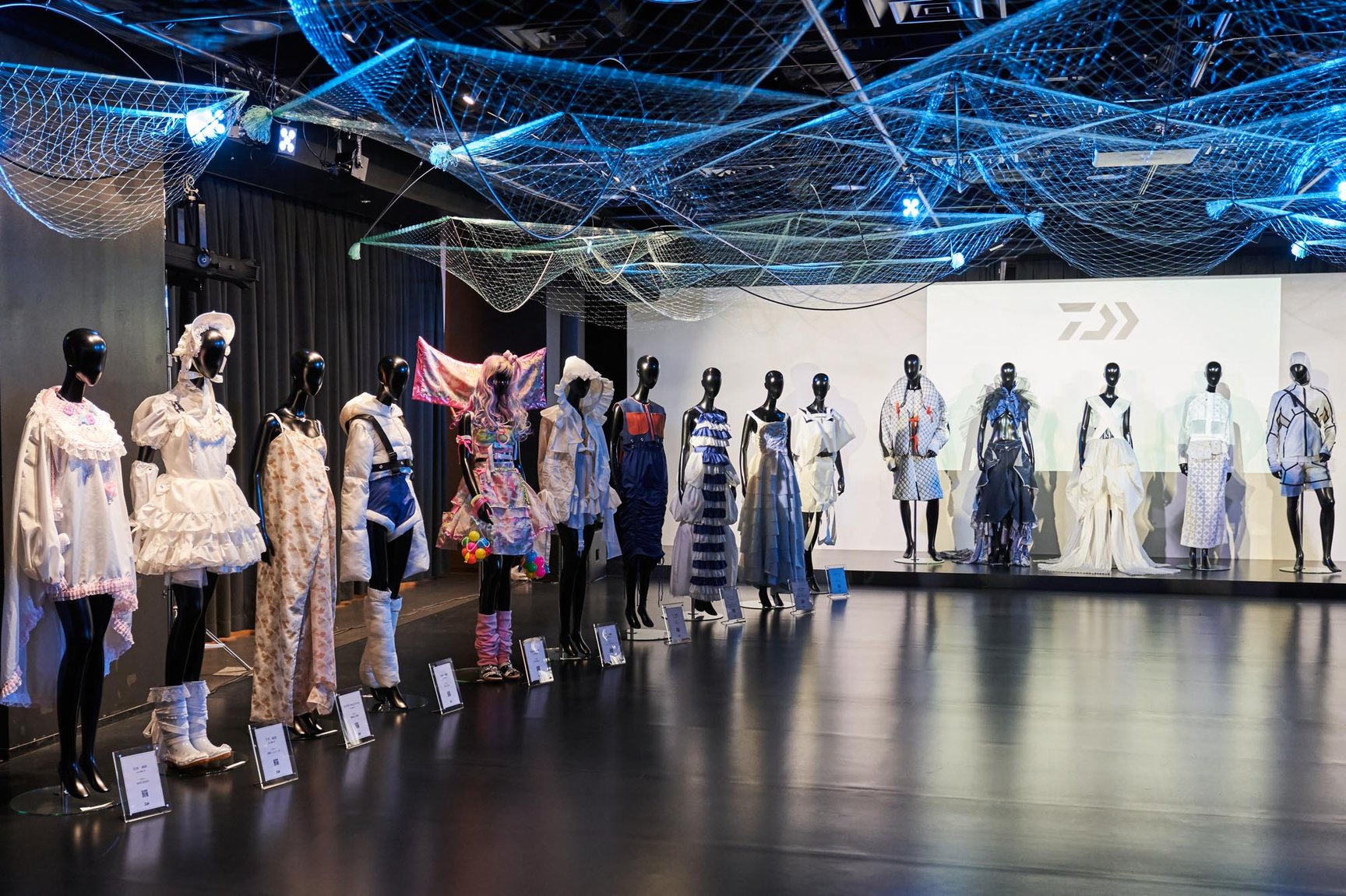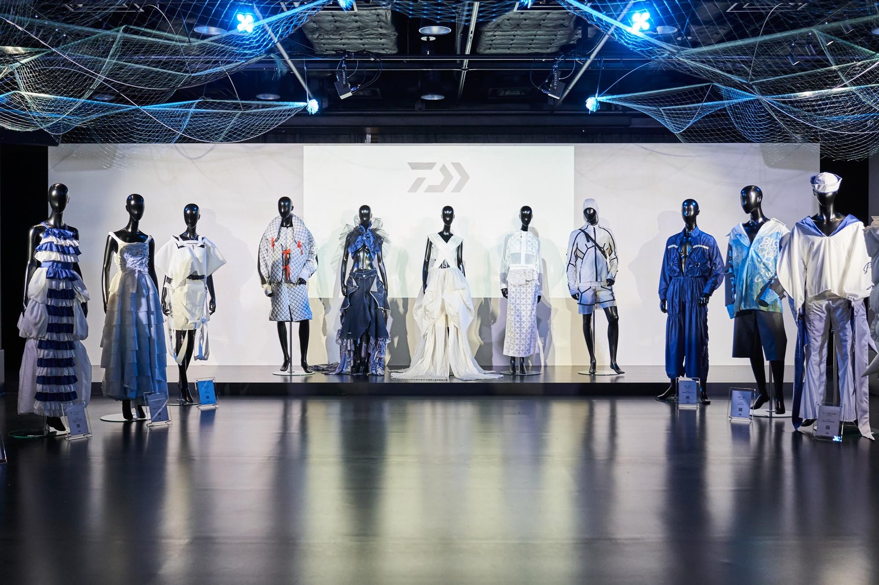 「ダイワ(DAIWA)」が、東京のファッションウィーク「Rakuten Fashion Week TOKYO 2023S/S」の公式会場である渋谷ヒカリエ8階「8/COURT」で、「BE EARTH-FRIENDLY ー漁網アップサイクル産学連携プロジェクトー」のイベントを開催している。期間は9月3日まで。文化学園と東京藝術大学の2校の学生とコラボレーションし、東京藝術大学の学生が手掛けた会場で、文化学園の学生が制作したファッションアイテムを展示している。