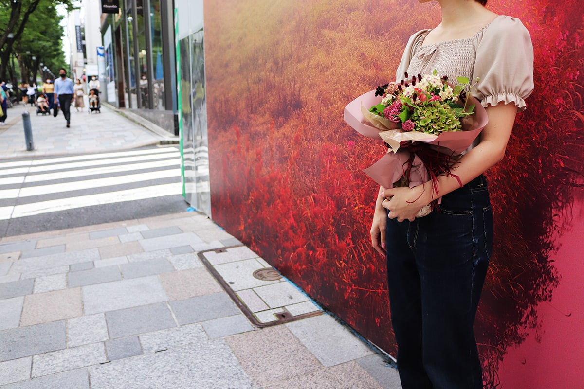 表参道・原宿には花が似合う。有名店から個性あふれるお花屋さんが点在しているためか、花束を持って街を歩く人の姿も珍しくない。その手にブーケがあるだけで、いつも歩く見慣れた景色も違って見える。一方で、表参道・原宿という街のフレームが一層、花の魅力を際立たせてくれるような気がする。花束と表参道・原宿の景色を重ねて、贈る誰かを想像したり飾る場所を考えたり。気持ちを咲かせる、花と街の風景。