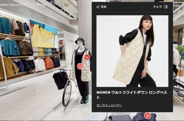 なお、今回の発表会の舞台となった「UNIQLO TOKYO」店舗について、来店できない顧客などに向けたサービスとして9月1日から10月下旬までのイベント開催期間の限定で、通販サイト内の特設ページ上にバーチャル店舗を開設している。