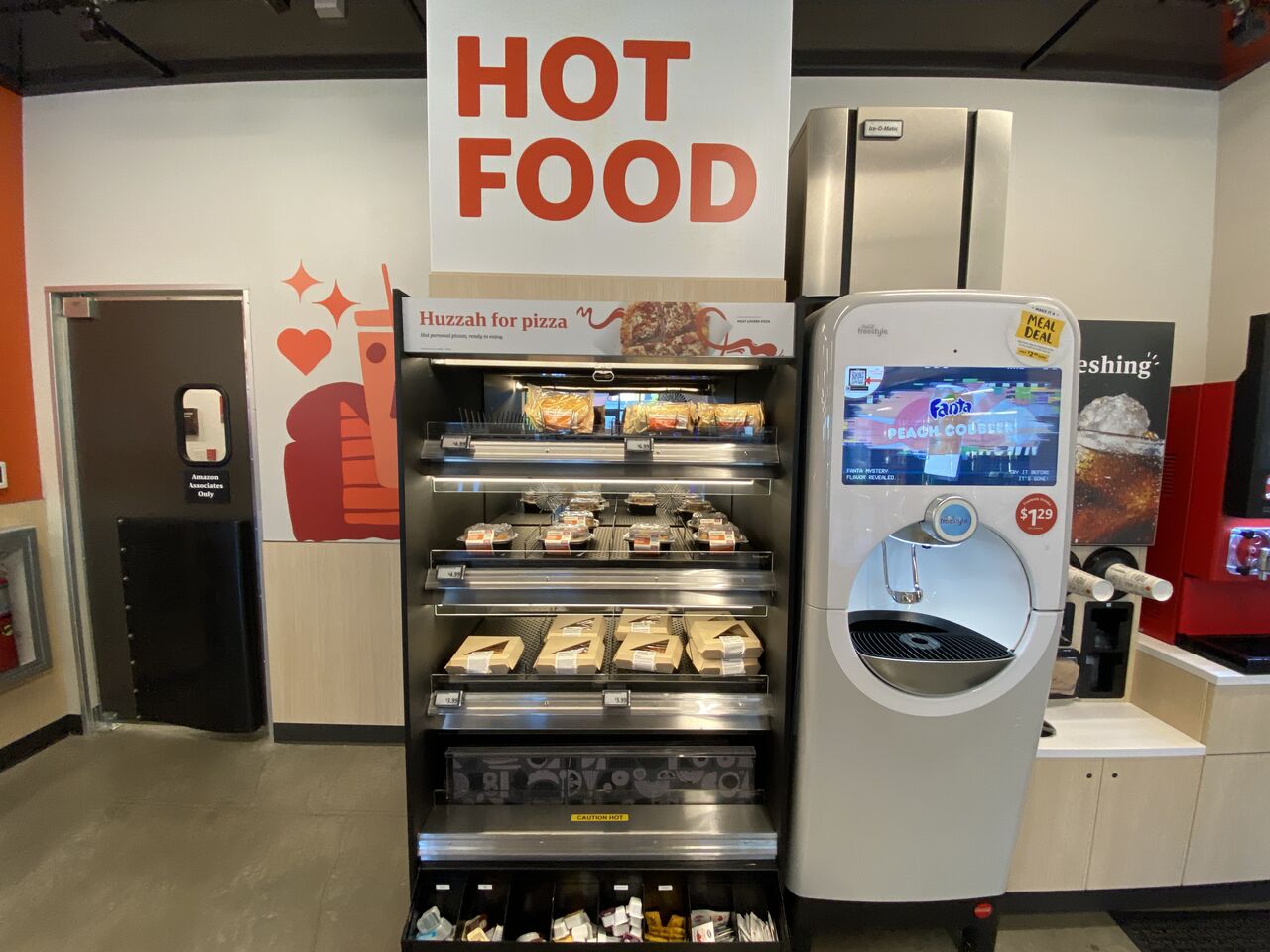 品揃えは通常のアマゾンゴーにあるグラブ&ゴーの寿司やサンドイッチ等や飲み物に加え、ミルクやチーズなどに大量パッケージ商品、ペット関連など。ワシントン州では初となるピンクベリーのフローズン・ヨーグルト(セルフ)に、郊外型コンビニらしくエンジンオイルも販売している。
