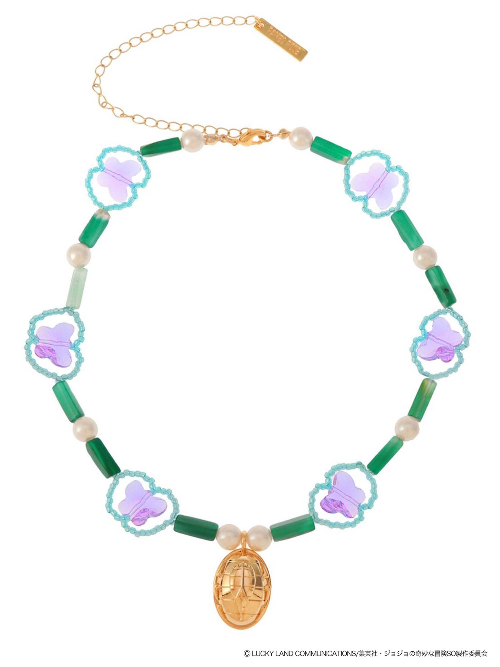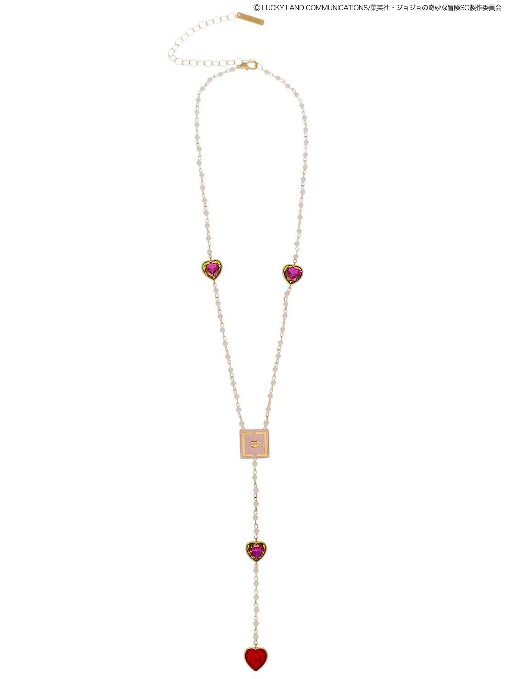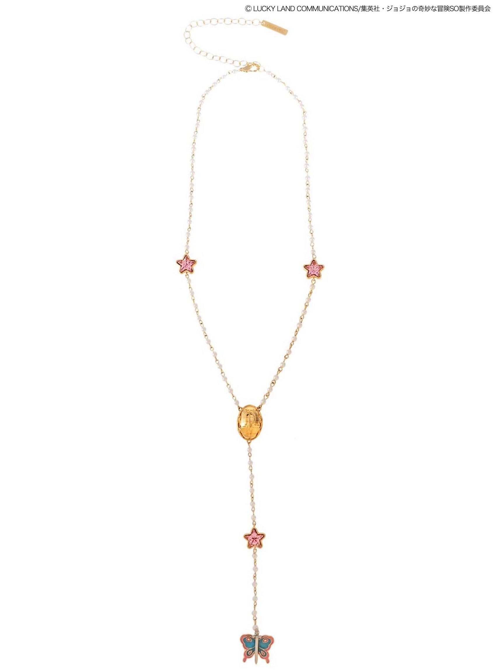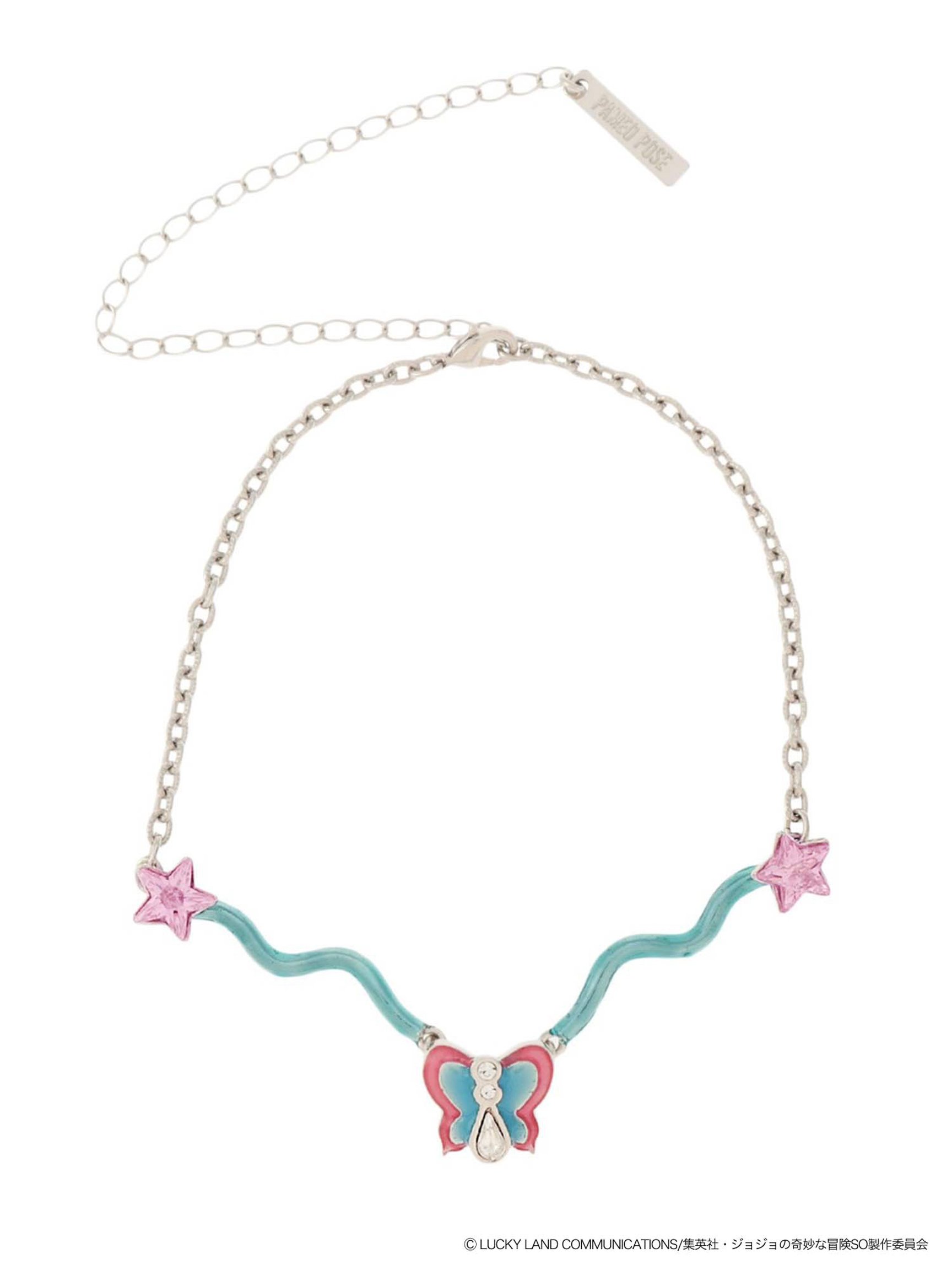 コラボでは空条徐倫を中心に、エルメェス・コステロ、フー・ファイターズ、ウェザー・リポート、ナルシソ・アナスイといった主要キャラクターのイメージをパメオポーズらしいロマンチックなデザインに落とし込んだアイテムを展開。アクセサリー類として、空条徐倫を象徴する蝶やストーン・フリーのスタンド 、星型のアザをモチーフにしたネックレスやイヤリング(1万2000〜1万3000円)、エルメェス・コステロのスタンドである「キッス」とハートを組み合わせたネックレス(1万8000円)、ウェザー・リポートの天候を操れる能力が明らかになったシーンから着想したチョーカー (1万5000円)とピアス(1万6000円)、作中でキャラクターが逃走防止用に着けたれた「見えない鉄格子」をイメージした指輪(7500円)などを揃える。