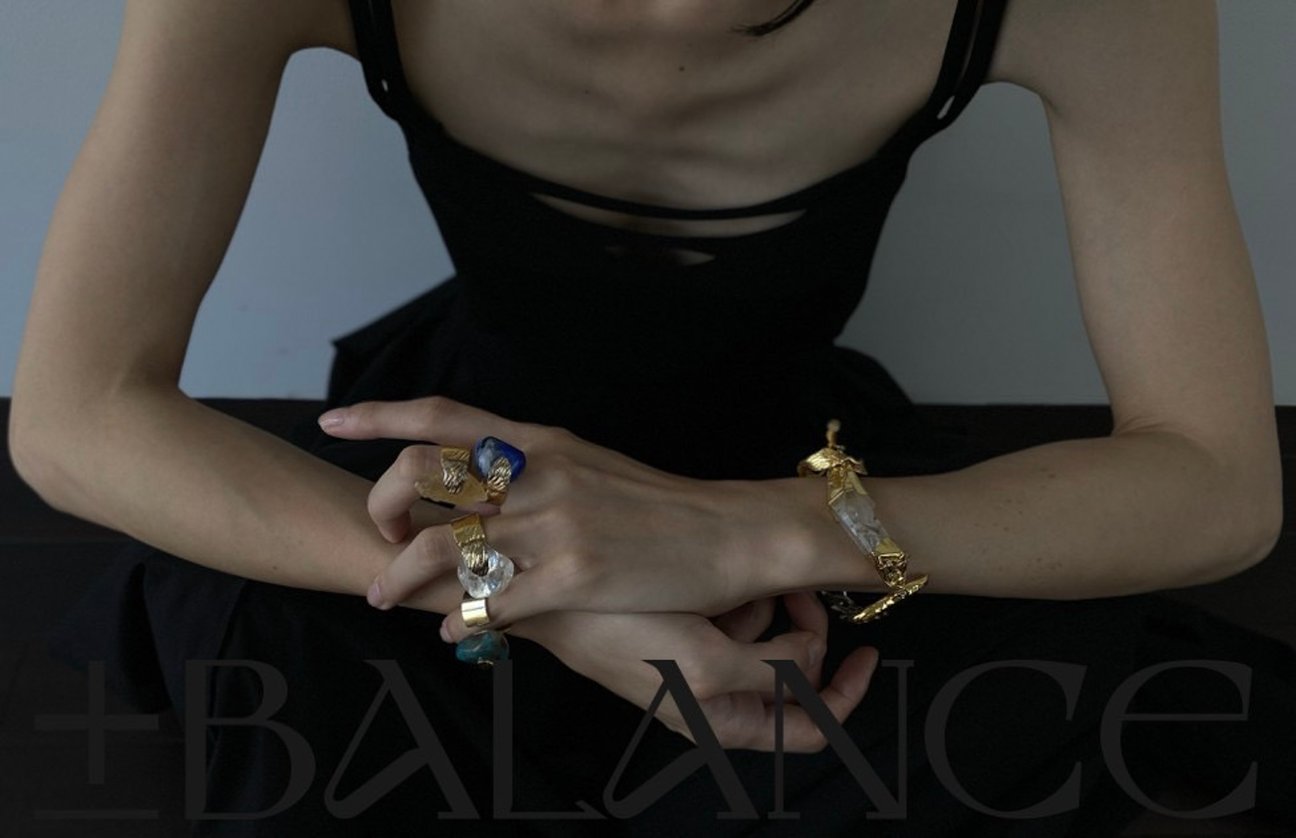 バランスでは、天然石を使用したジュエリーを製作。森羅万象をモチーフとした独特な造形と、固有のストーリーを持つ石のフォルムが融合したデザインを提案する。ファーストコレクションでは、水晶オニキスネックレスやメッシュリングなど、1点物を含む様々なジュエリーを展開。価格帯はピアスが1万5000〜4万円、リングが2〜5万、ブレスが3〜8万円で、今後自社ECで石をセレクトできるセミオーダーサービスの提供を予定している。