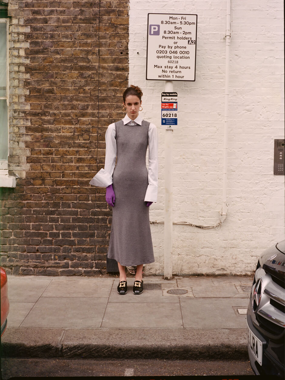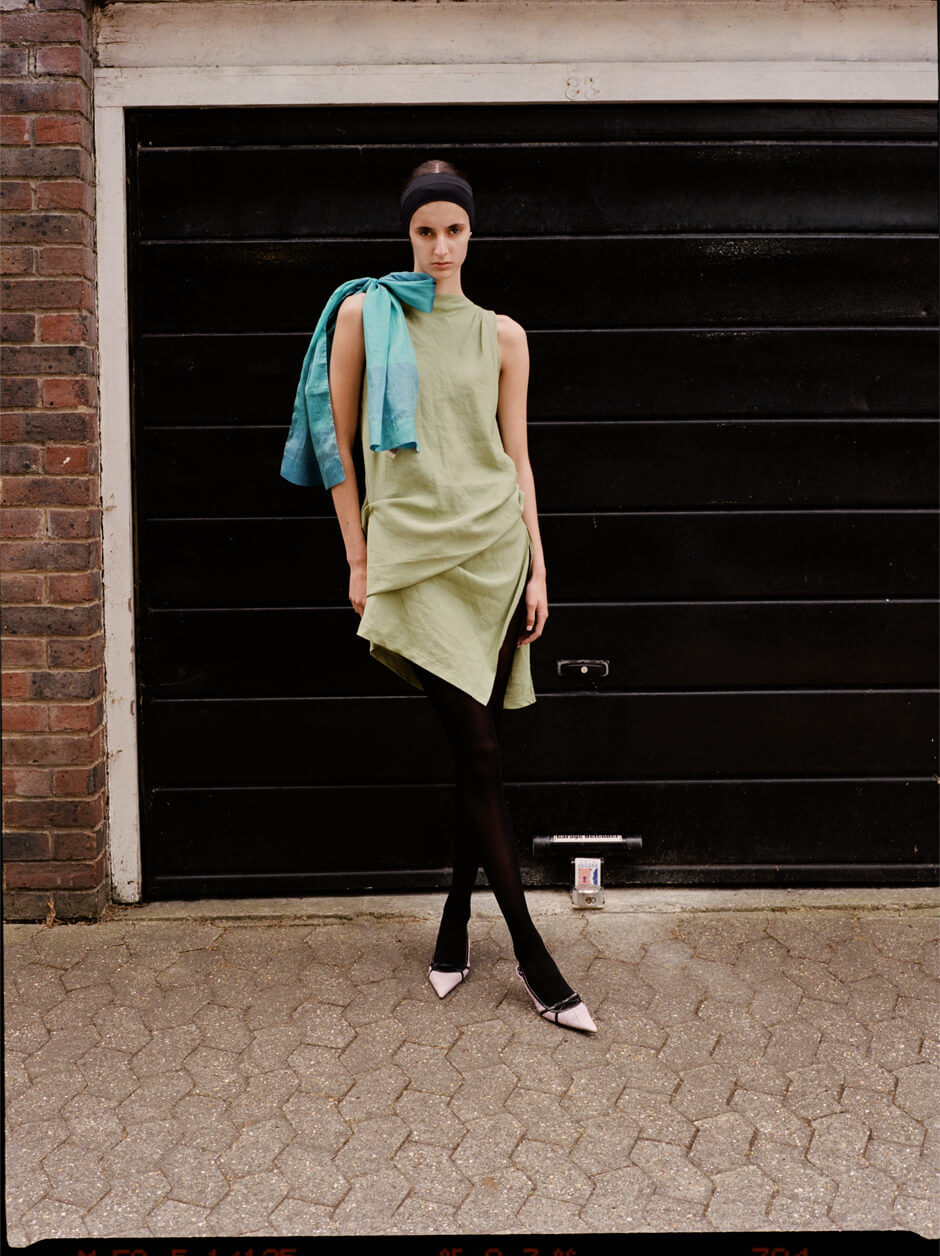 dress by COS, shoes by AJOY SAHU, single earring by RACHEL SIMONE