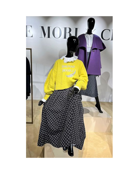 「フレイアイディー」は、ウールにラメ糸を織り込んだツイードスカートを出す。「セルフォード」は、「ハナエモリ」と協業したセーターにビーズ刺繍で月のモチーフをあしらう。「エミ」は、靴下の口ゴムにラメを取り入れた。
