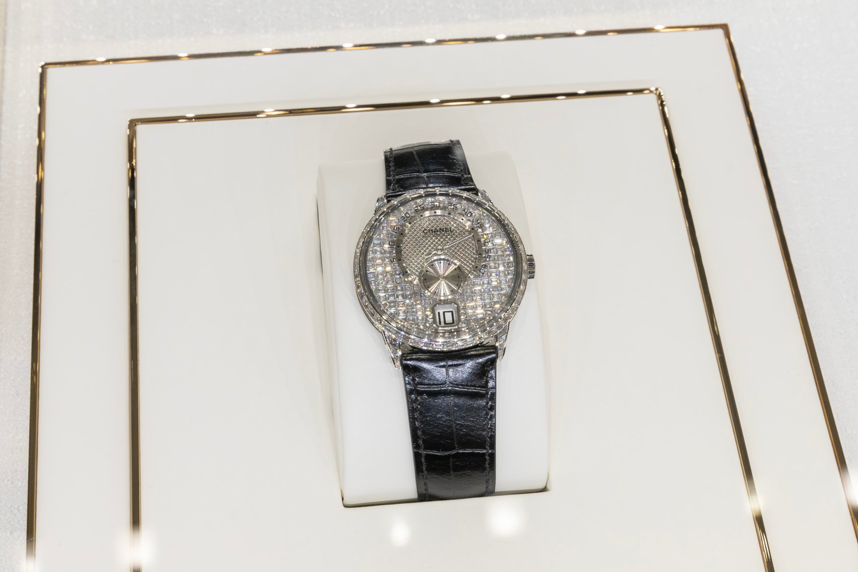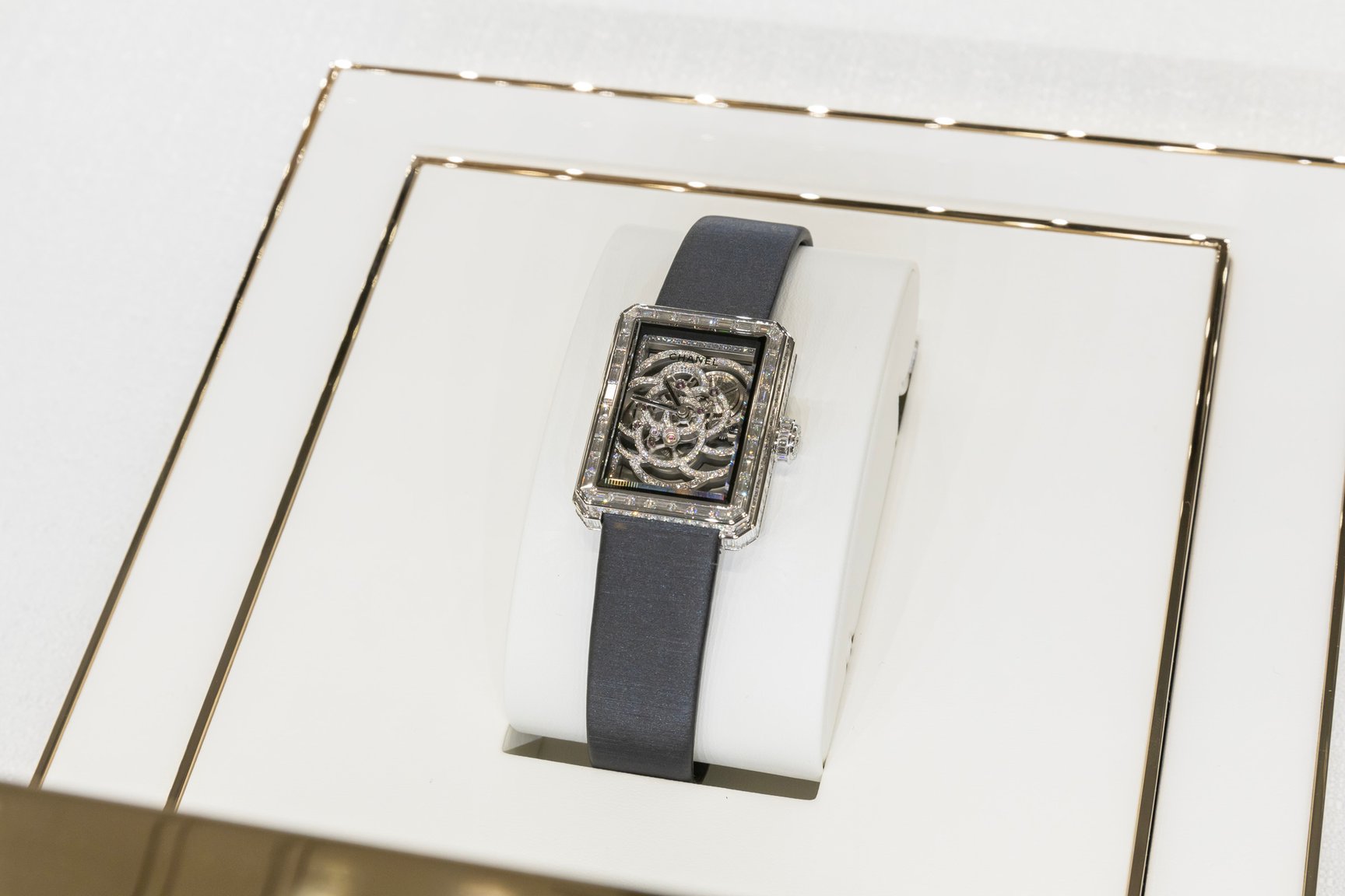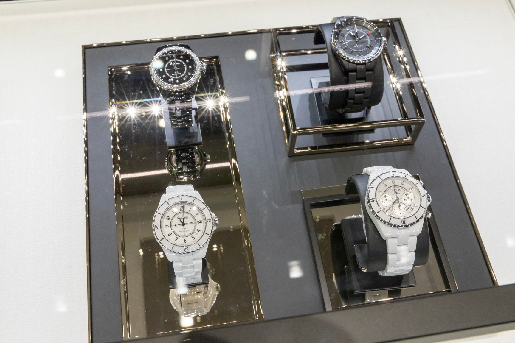 同階ではハイエンドウォッチ(オート オルロジュリー)もショーケースに並び、自社製ムーブメントを採用した「ムッシュー ドゥ シャネル キャリバー 1」「プルミエール キャリバー2」「ボーイフレンド スケルトン キャリバー 3」といった高額商品を取り揃える。「J12 ダイヤモンド トゥールビヨン」のホワイトモデルは、来年のウォッチズ&ワンダーズでの発表に先駆け特別に受注販売を受け付けている。部屋の奥には、ゆったりと買い物ができプライベート感のあるVIPサロンが併設されている。