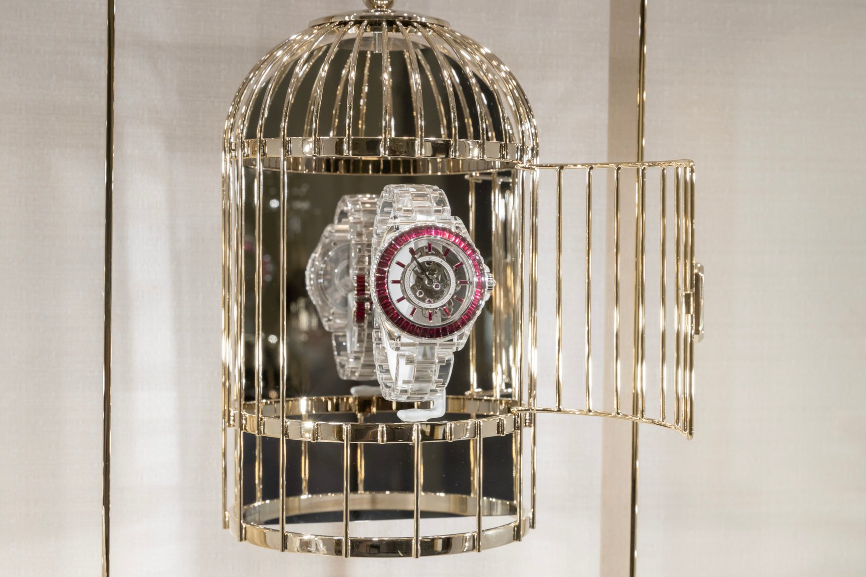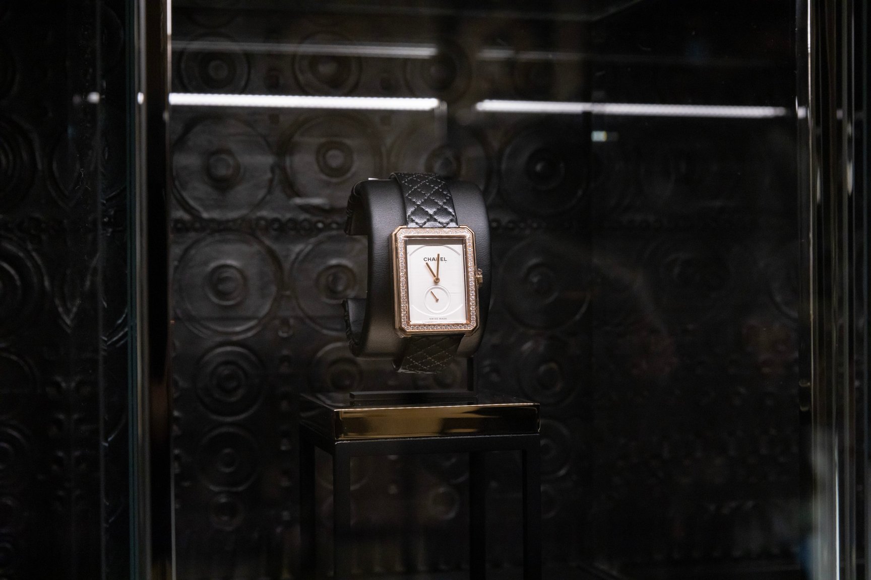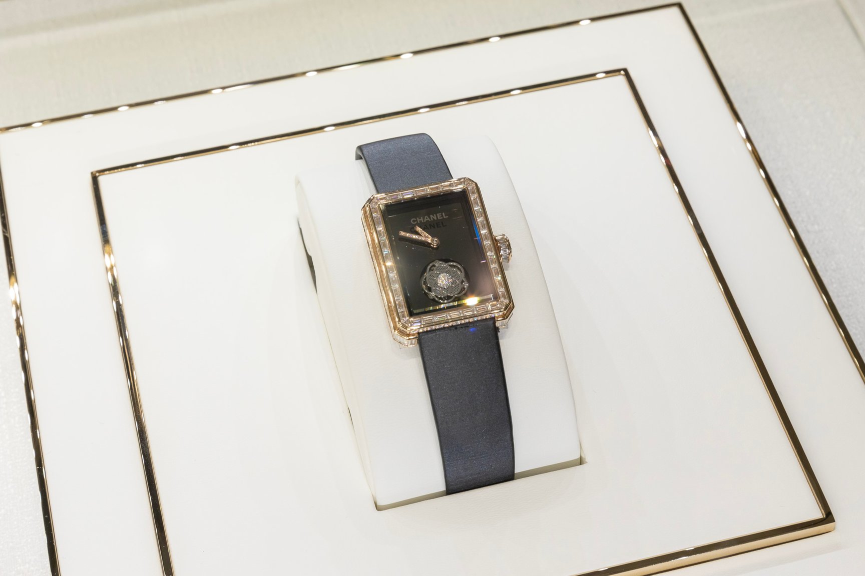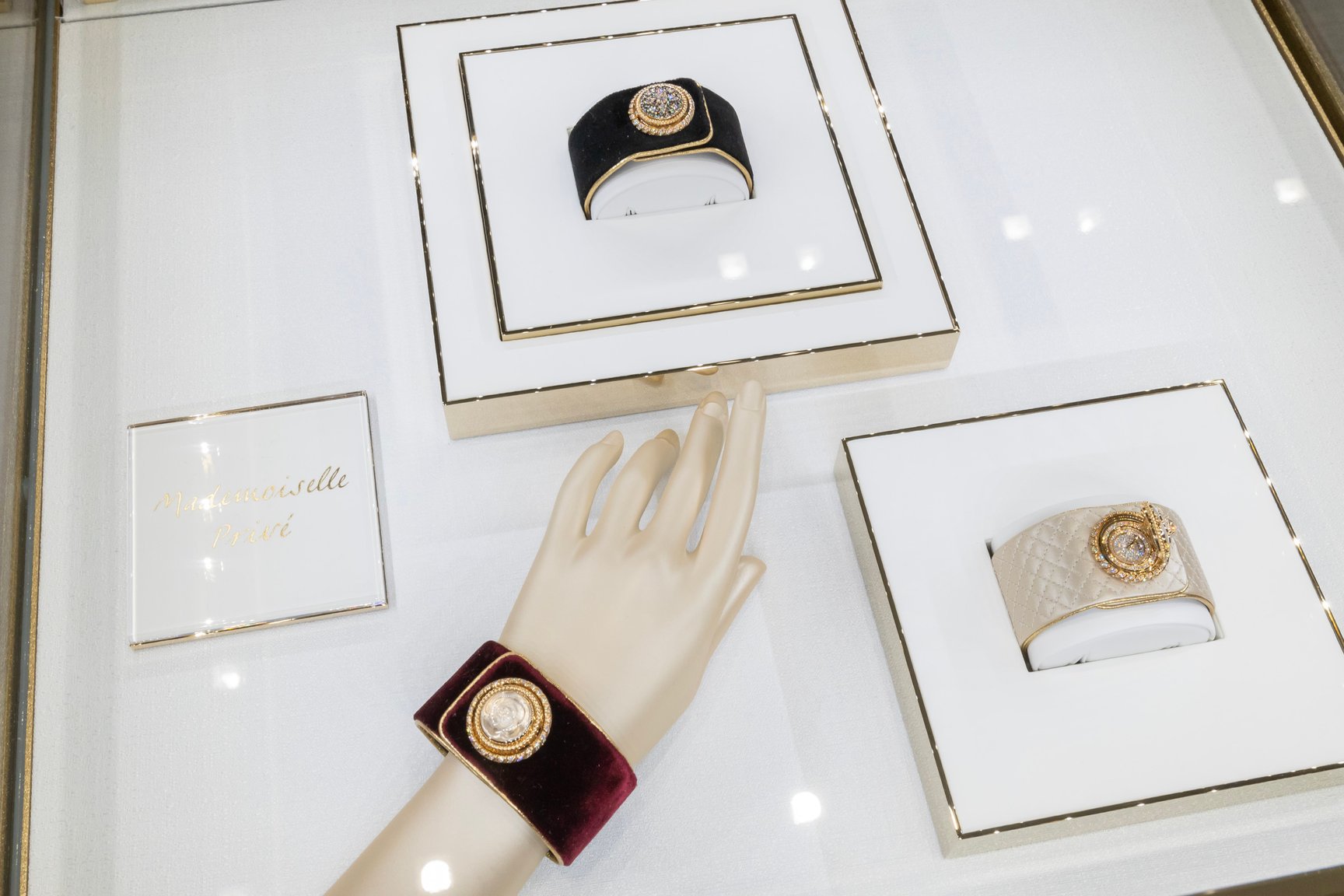 同階ではハイエンドウォッチ(オート オルロジュリー)もショーケースに並び、自社製ムーブメントを採用した「ムッシュー ドゥ シャネル キャリバー 1」「プルミエール キャリバー2」「ボーイフレンド スケルトン キャリバー 3」といった高額商品を取り揃える。「J12 ダイヤモンド トゥールビヨン」のホワイトモデルは、来年のウォッチズ&ワンダーズでの発表に先駆け特別に受注販売を受け付けている。部屋の奥には、ゆったりと買い物ができプライベート感のあるVIPサロンが併設されている。