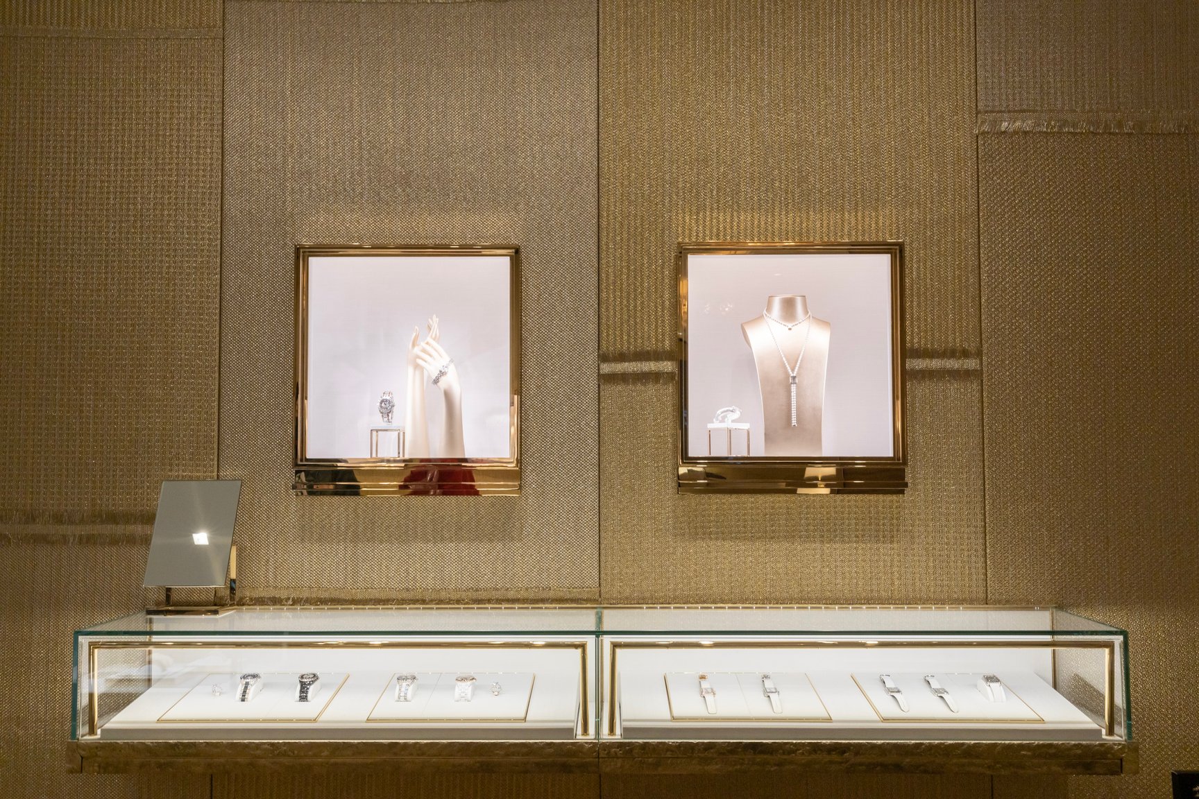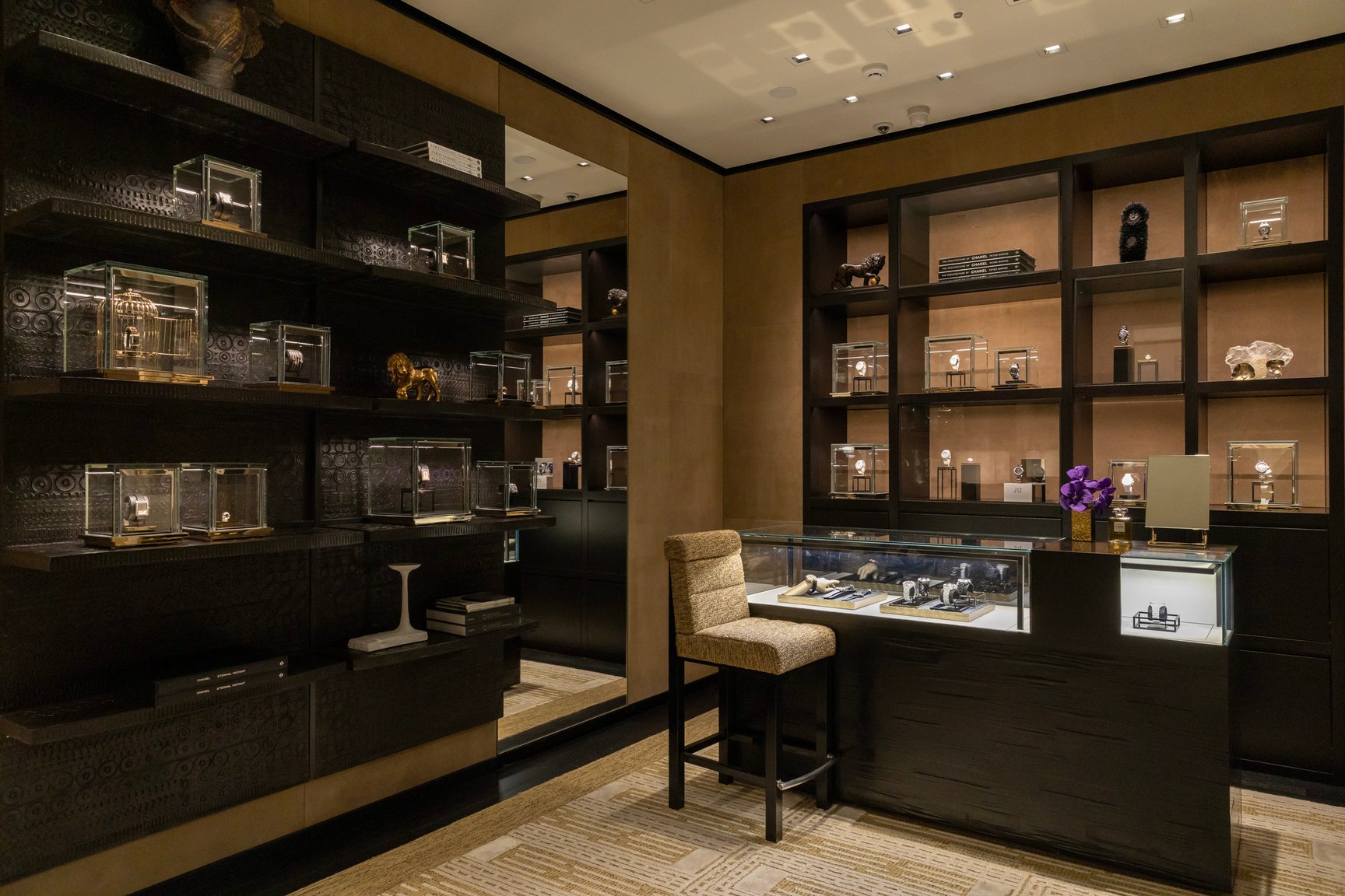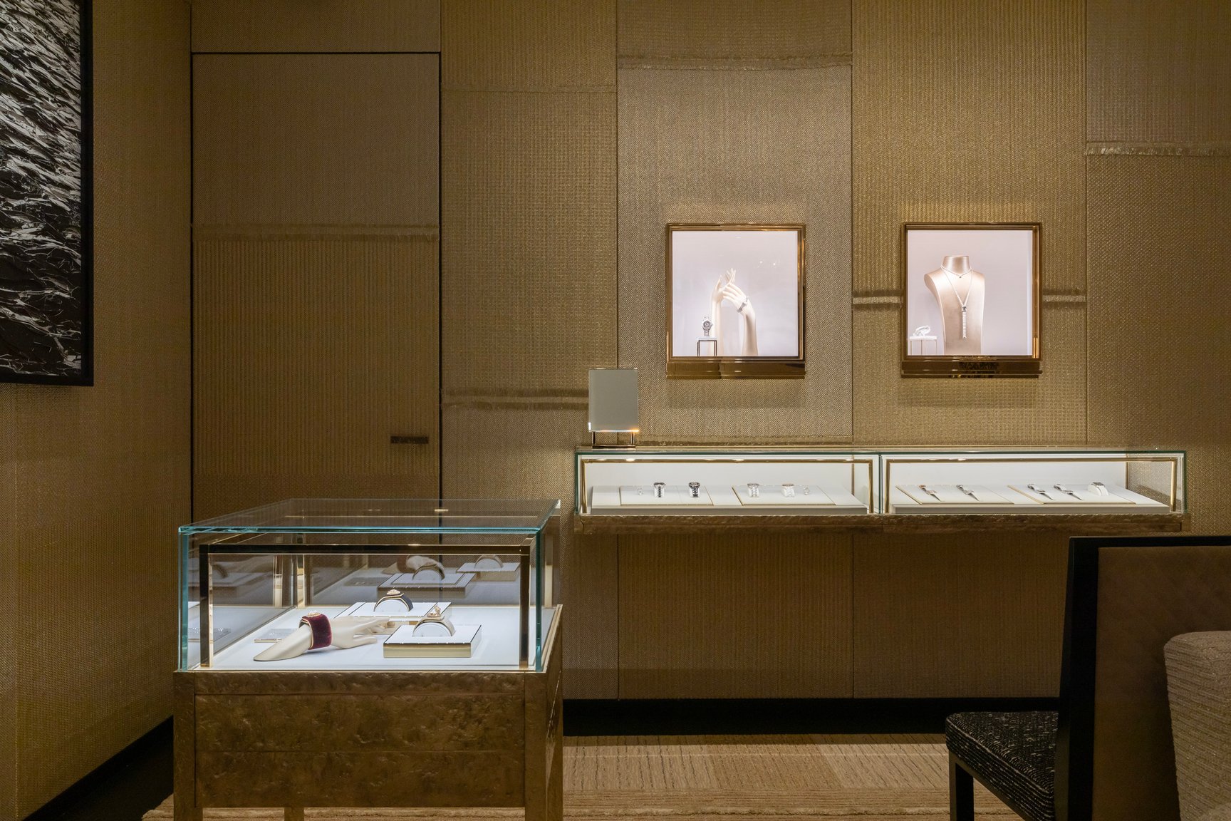 店舗は、今年5月にリニューアルオープンしたパリ・ヴァンドーム広場の「シャネル ファイン ジュエリー パリ本店」と同様、建築家のピーター・マリノが設計。内装は白、黒、ベージュ、ゴールドを基調に、フロアごとのコンセプトに沿った美術品やインテリアを配置した。シャネルツイードを想起させるカーペットをはじめ、一部フロアでは職人により塗装された漆喰の壁、京都西陣のHosoo製の西陣織の壁紙を採用するなど、日本の伝統工芸の技術も随所に取り入れ、細部に至るまでこだわりが詰め込まれている。