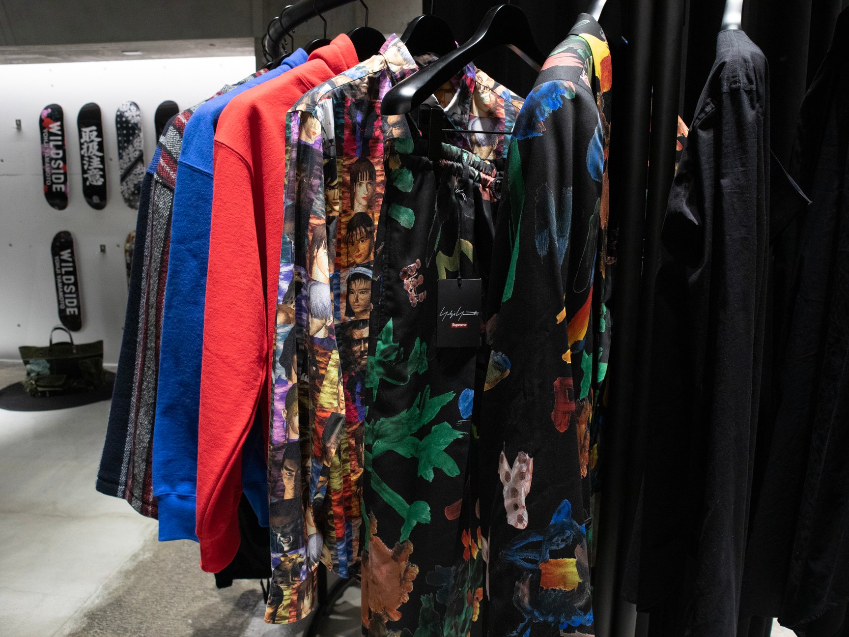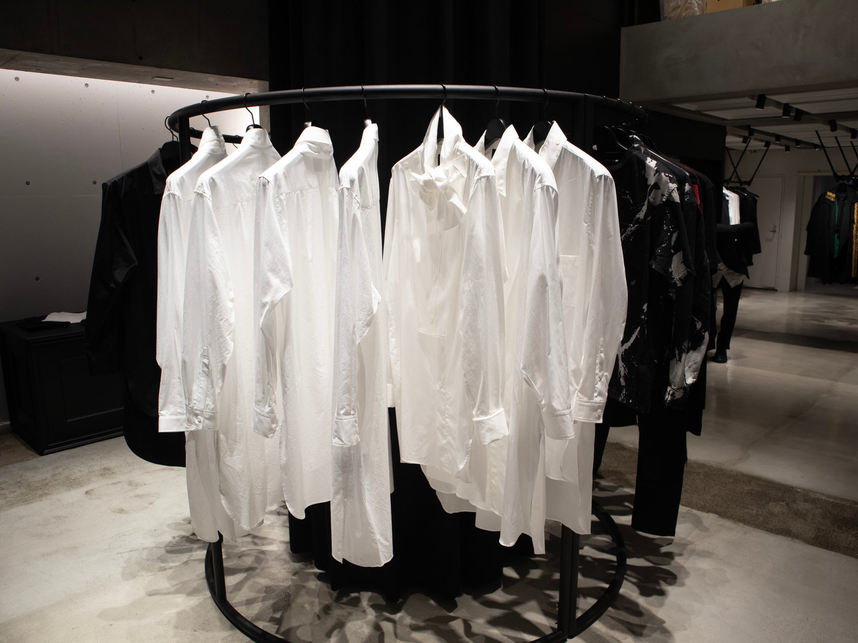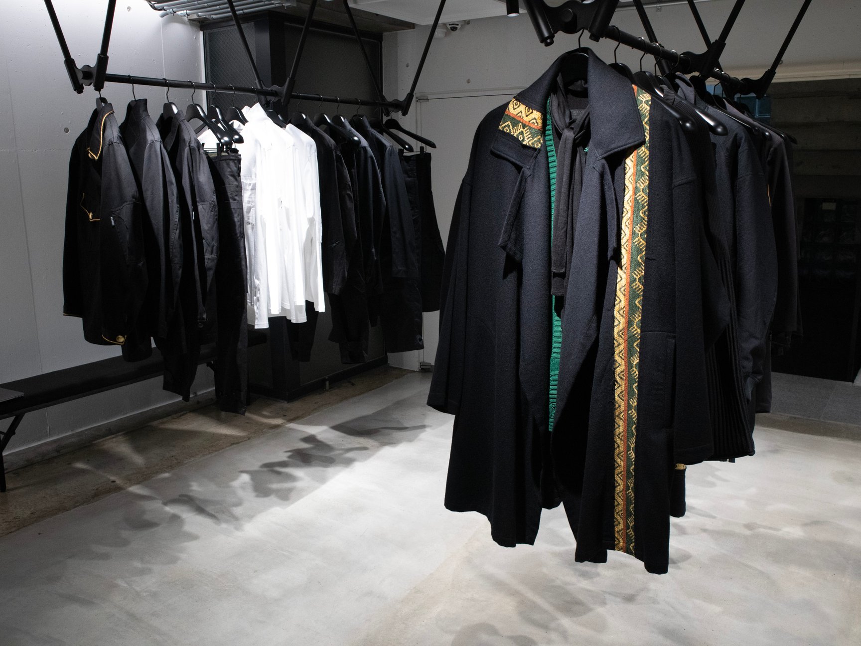 2階ではヨウジヤマモト、ディスコード ヨウジヤマモト、リミフゥ、3階ではワイズ、4階ではヨウジヤマモト プールオムを展開する。松重豊や伊原剛志などがショーモデル出演して話題を集めたヨウジヤマモト プールオムの2022年秋冬コレクションは既に全国で品薄状態となっているが、同店では特別に豊富なラインナップで展開する。