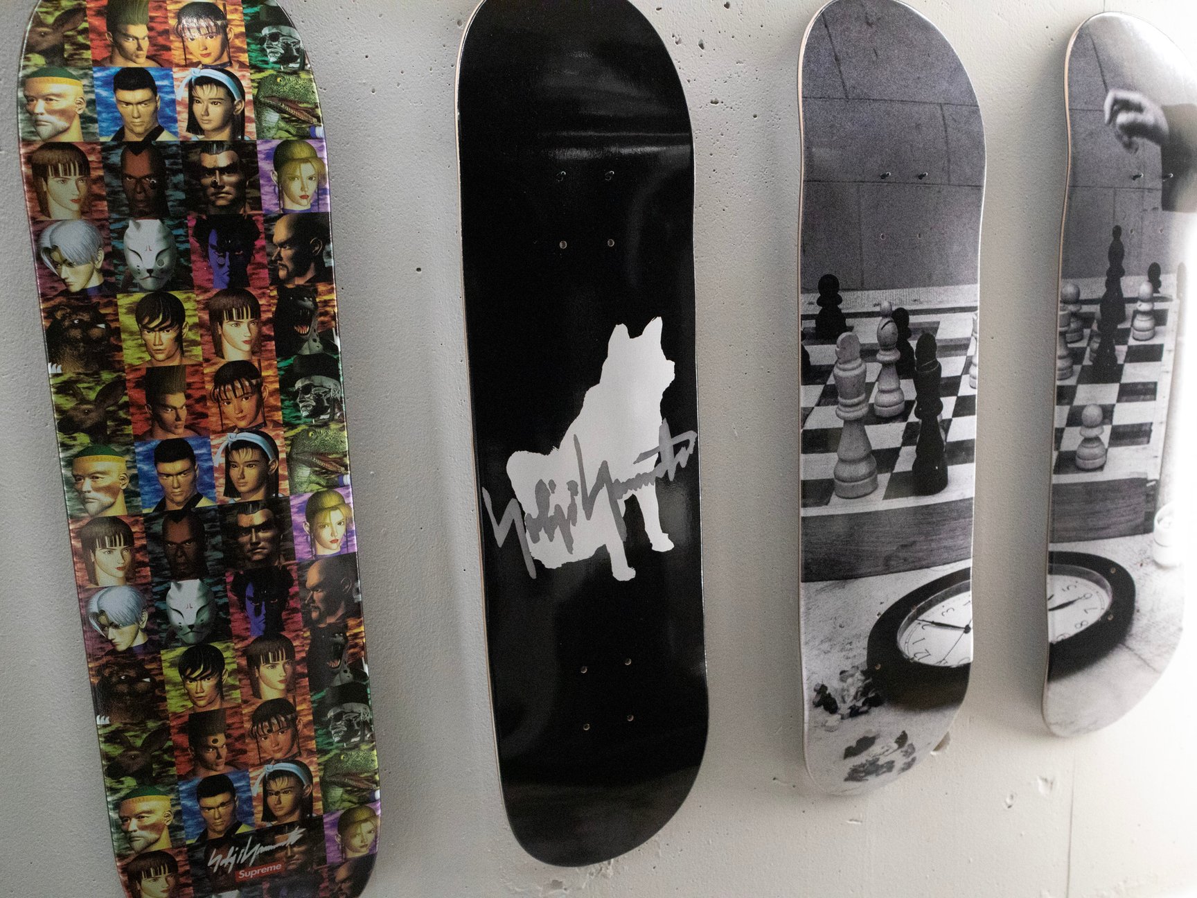 売場面積約110坪の店内は4フロアに分かれており、1階では今年新たに立ち上げたワイルドサイド ヨウジヤマモトと初の常設展開となるオフィシャルウェブストア限定ブランドのサイト、ホワイトシャツを展開するパワー オブ ザ ホワイト シャツを販売。山本耀司の愛犬である「凛」をモチーフとしたTシャツやフーディー、 スケートボードといった限定アイテムを扱うほか、フーディーやレザージャケットなどシュプリームとのコラボアイテムを用意する。また、展示されているボディは小木“POGGY”基史がディレクションし、入口右手上部にはニューヨークの伝説的なクラブ「パラディウム(Palladium)」に着想を得たLEDパネルが設置され、写真家Takayが撮影したヨウジヤマモトの写真を映し出す。
