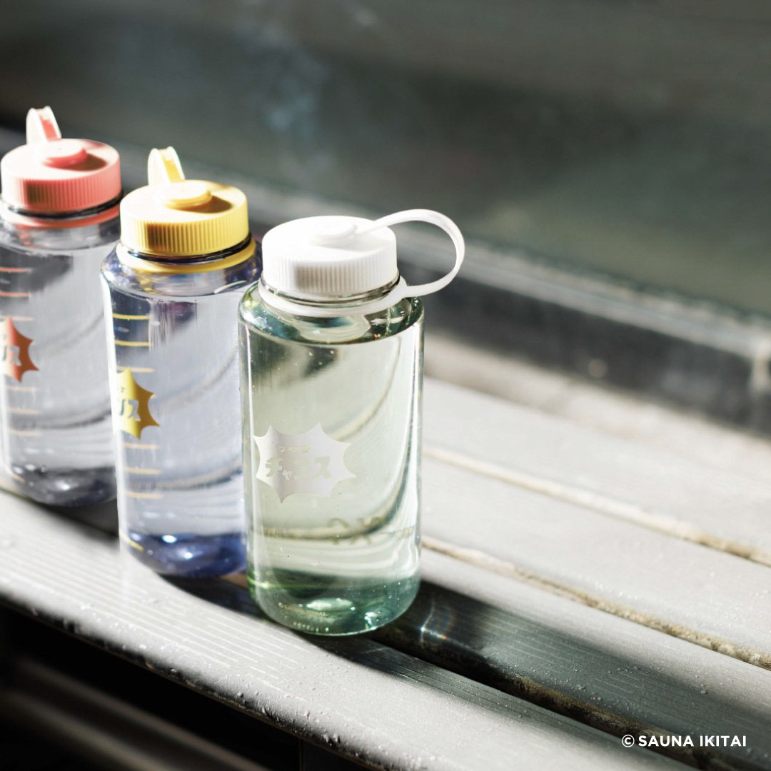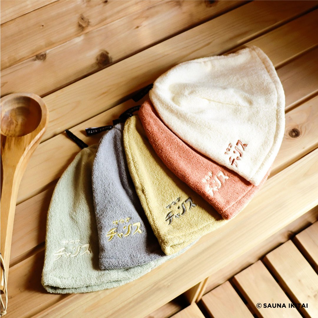 コラボではサウナグッズとして、サウナチャンスシール付きハット(5色展開、各1100円)や折りたたみマット(3色展開、各330円)、銭湯タオル(3色展開、各330円)、透明巾着10個セット(2色展開、各330円)、目盛り付きボトル(3色展開、各550円)、ボトル付きセームタオル(3色展開、各550円)、透明キーホルダー(5色展開、各330円/いずれも税込)をラインナップし、カラーパレットには淡い色調を採用した。