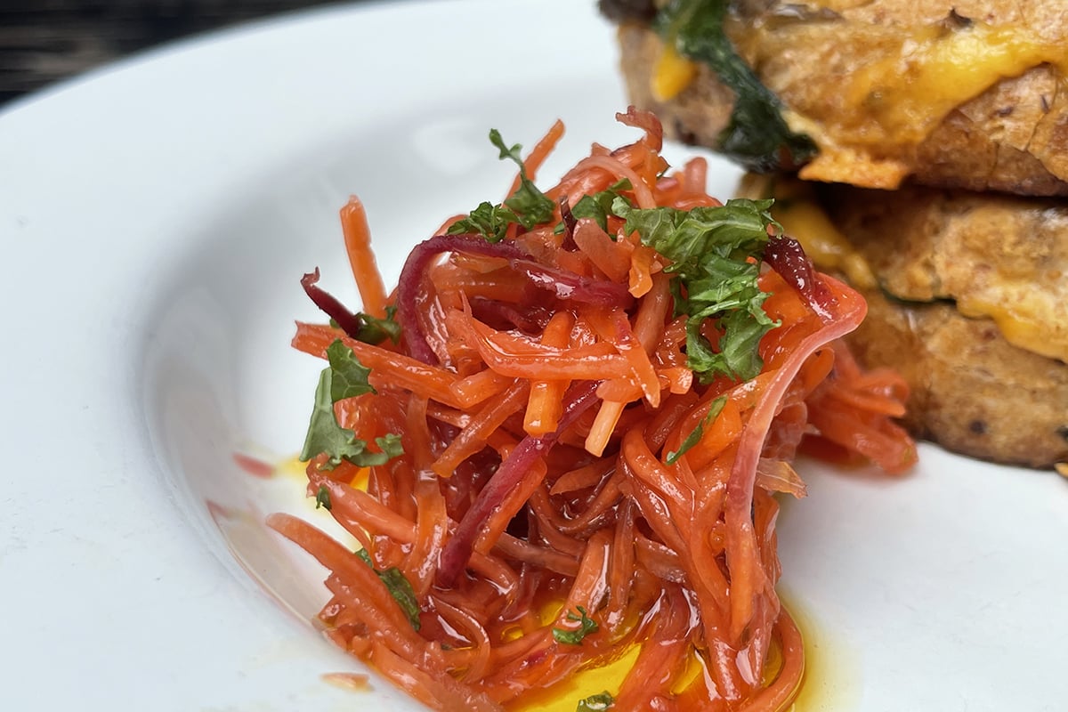サイドに盛られているのはにんじんのピクルス。しっかりとビネガーが効いていてやみつきになりそう。コクの強いトースティとの相性も良く、口の中を落ち着かせてくれる。