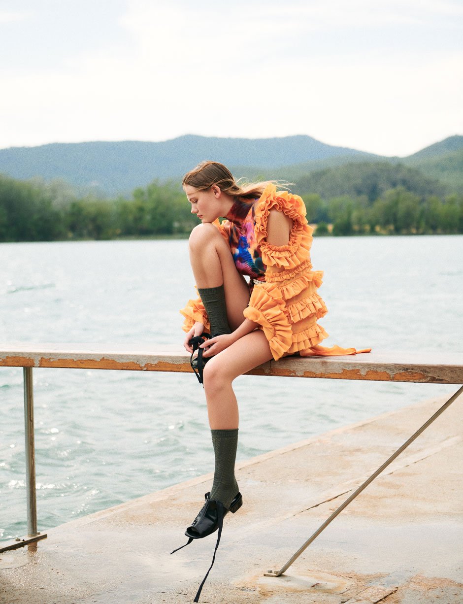 jacket and shoes by MARC JUAN COMUNICACIÓN, top by BLEND SHOWROOM, socks and belt stylist’s own