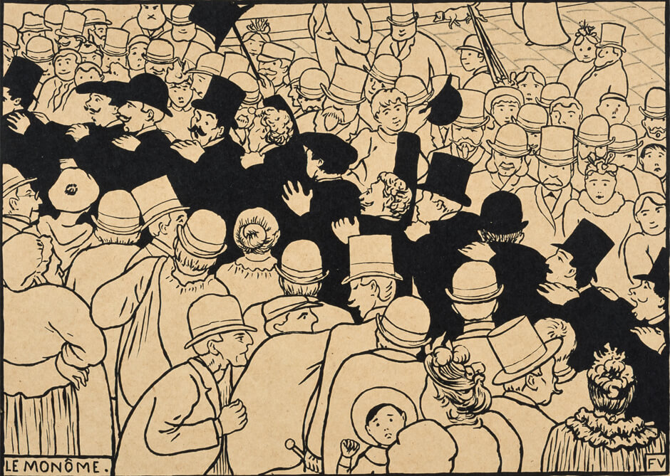 フェリックス・ヴァロットン《学生たちのデモ行進(息づく街パリⅤ)》1893 年 ジンコグラフ 三菱一号館美術館
