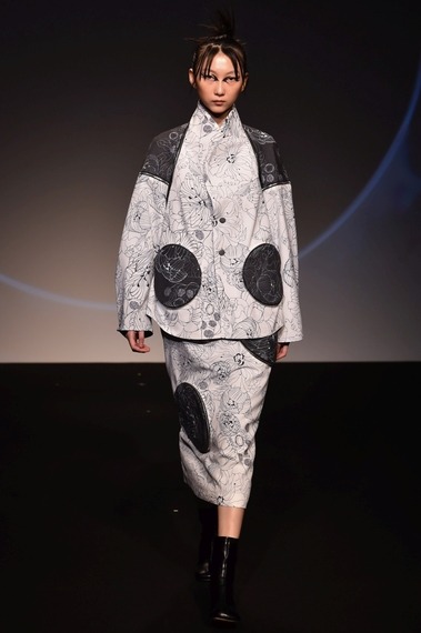 アパレル部門グランプリの松井さんの作品は、金属ファスナー「エバーブライト」の特徴を生かしたリアルクローズを作り上げた。ファスナーをサークル状に縫製する丁寧な物作りとエイジレスなデザイン、ファスナーを取り外すと着る人を美しく変化させる表現が「今までのグランプリにはなかったもので、これからのYKKファスニングアワードに変化をもたらす」と評価された。