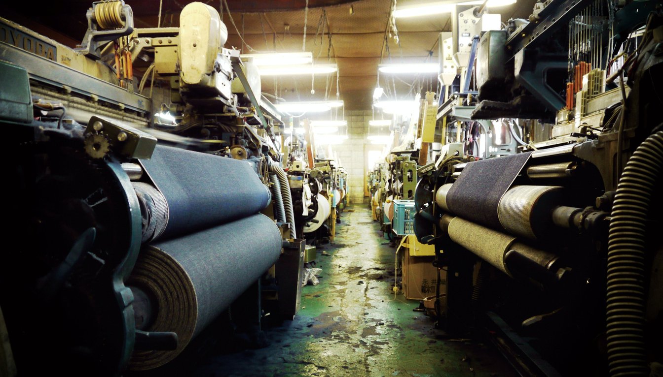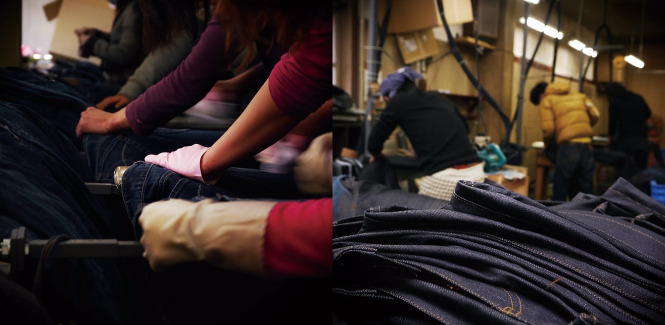 FDMTLのデニム生地を作っている工場とダメージ等の加工を入れている加工工場、ともに岡山にある。