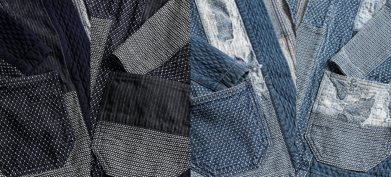 それをパッチワークすることで、複雑な単体のインディゴの生地が出来上がるイメージで、それに更に加工を入れると、1つの生地では表現ができない表情になるというのが面白いところだと思います。