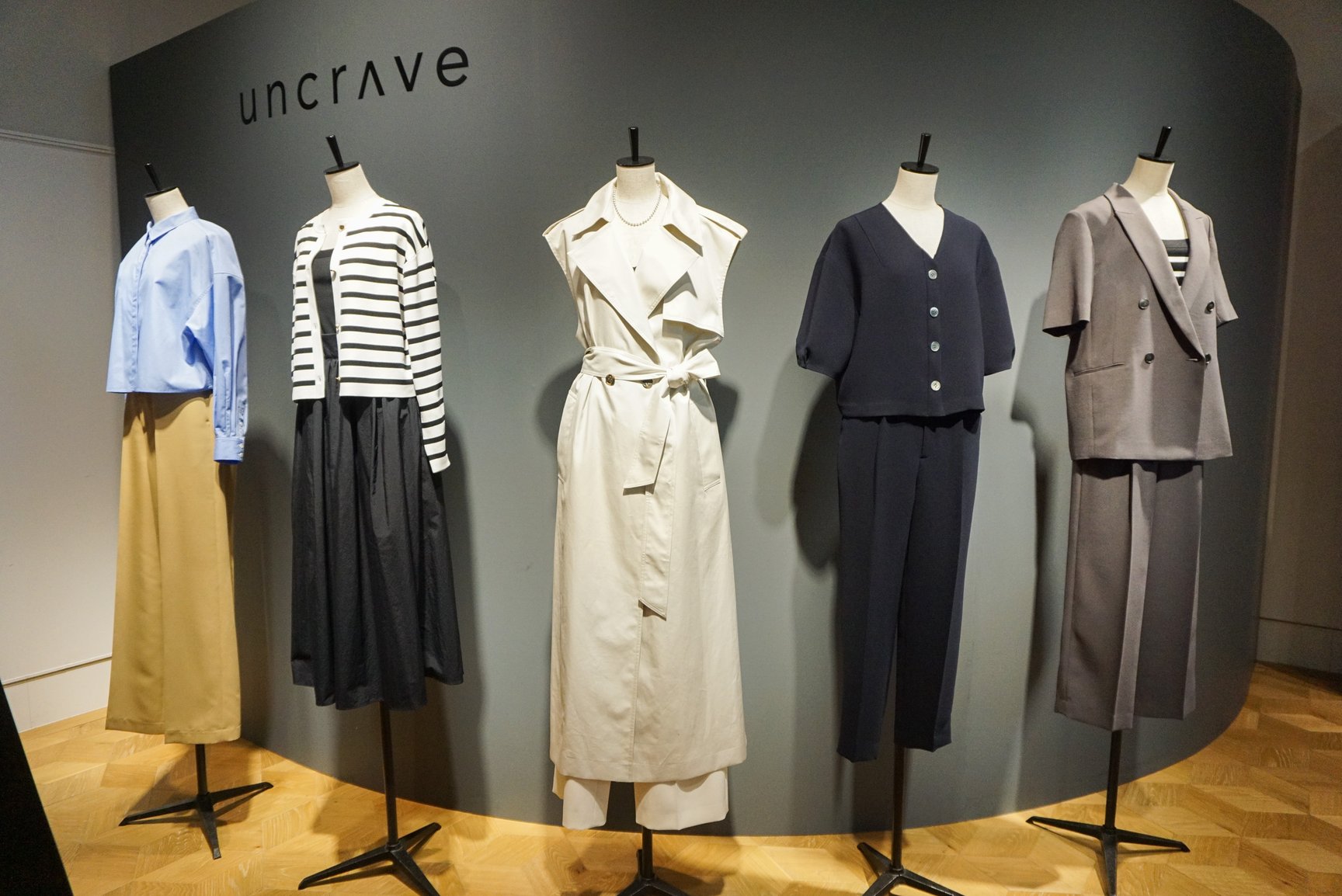 2020年春夏シーズンにデビューしたアンクレイヴは「むやみに欲しがらない="uncrave"な大人が、 これさえあればいいと思える服」をコンセプトにしたウィメンズブランドで、実店舗を持たずにオンラインを主軸に展開している。購買層は30〜40代の女性が中心。忙しい日々の中でスタイリングに迷う時間を省けるセットアップの提案が支持されており、高品質な素材を使うなど上質なものづくりもオンワードグループならではの強みとなっている。アンクレイヴが立ち上がった2020年は新型コロナウイルス感染拡大が始まり、アパレルの消費が大きく落ち込むなど苦しい時期だったが、アンクレイヴも一度売り上げが落ち込んだものの想定よりも安定した売れ行きを維持したという。