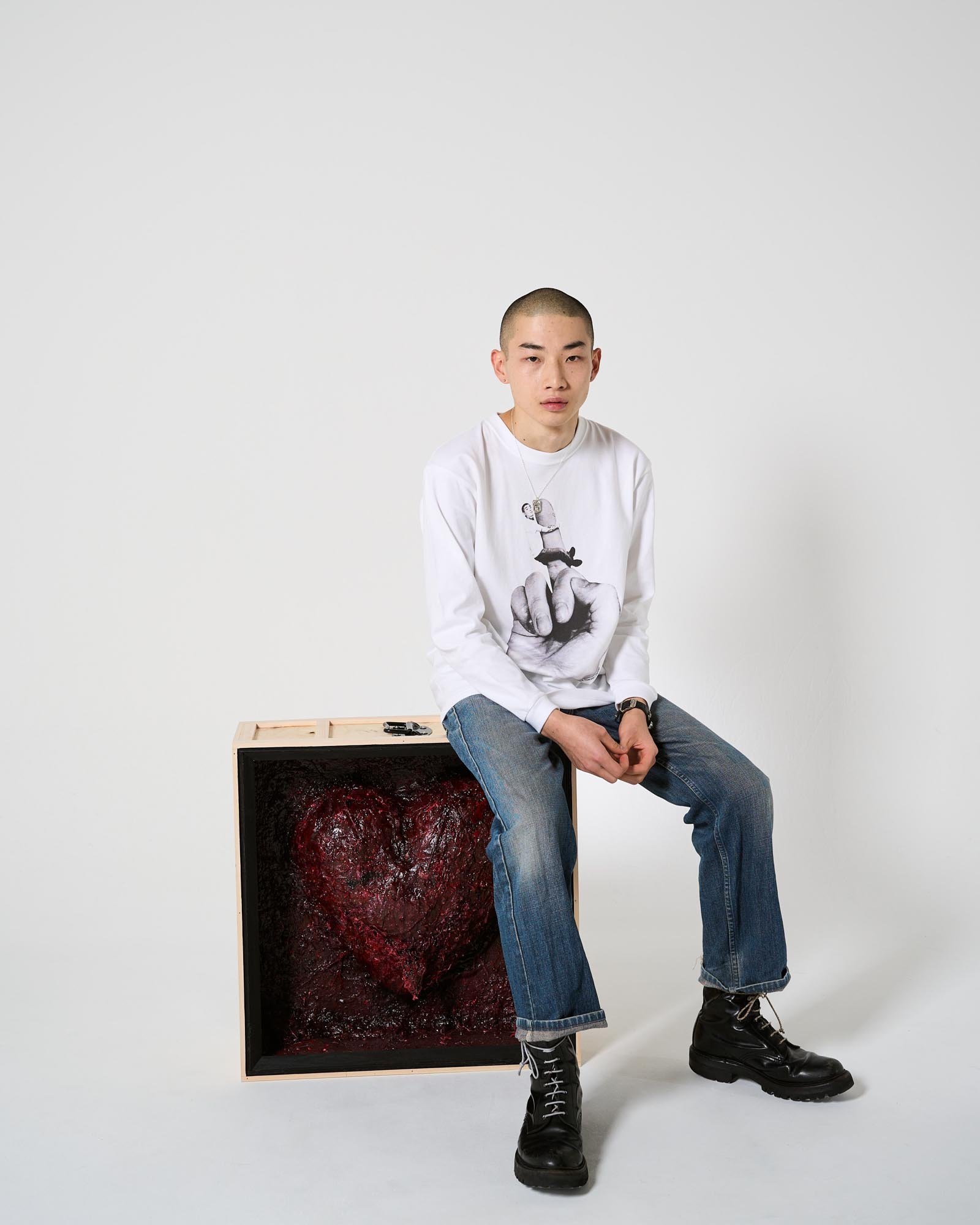 会場は、12月17日と18日に原宿のセレクトショップ「カンナビス(CANNABIS)」で、20日と21日に大阪のセレクトショップ「オブジェクト(OBJECT)」で、24日と25日にBAYCREW’S STORE名古屋PARCO内の「BAYCREW’S DEPO」で実施。両者のコラボレーションアイテムとして、背面にハートマークをあしらったリバーシブルのMA-1ジャケット「I HATE SUMMER JACKET」(3万8500円)や、ペプシコーラをイメージした「ROMANCE KNIT」(1万7600円)、FUCKの文字で木のグラフィックを作った「“F” KNIT」(1万7600円)、中指を立てた写真をプリントした「”F“ LONG SLEEVE TEE」(7700円)、缶のプルタブモチーフの「DRUNK NECKLACE」(1万3200円)を販売する。