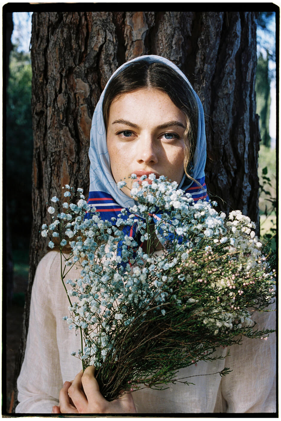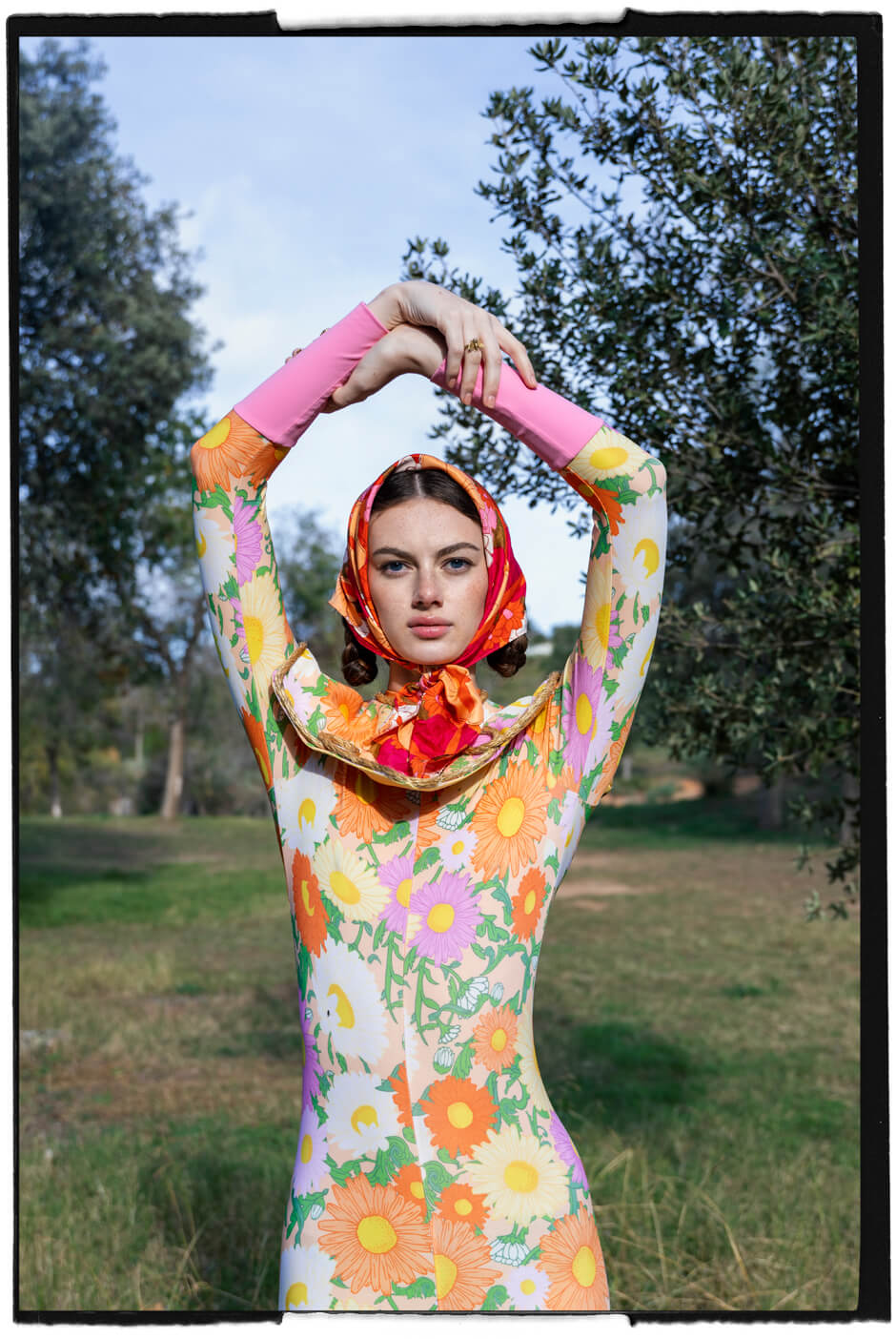 dress by ANNA GIMENEZ, trousers by PAULA OLIVELLA RUIZ, scarf by ALESIA, earrings by SUAGONGO, socks and shoes stylist’s own