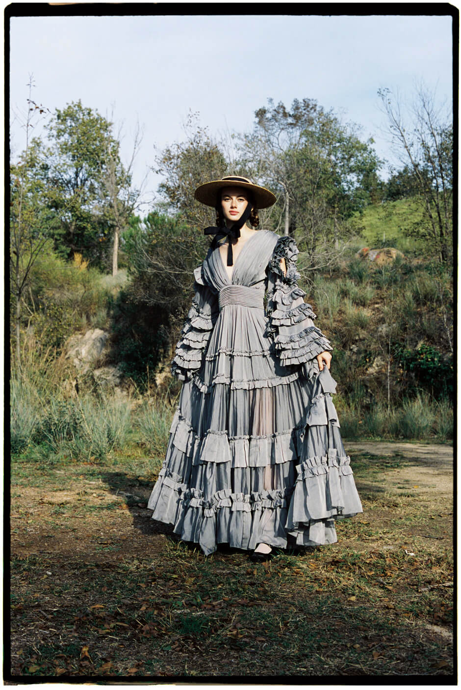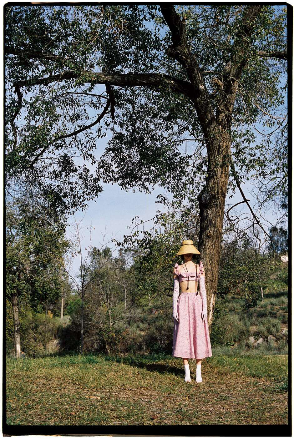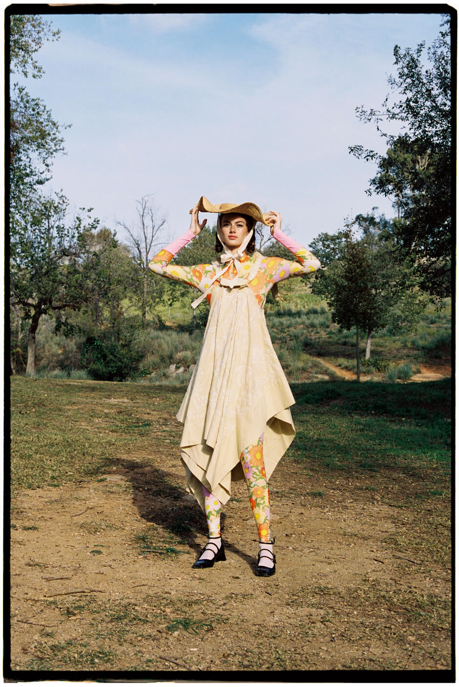 dress by AITOR GOIKOETXEA, bodysuit by COMO LA TRUCHA AL TRUCHO STUDIO, hat by ZAHATI, ring by FERNANDO RODRIGUEZ, socks and shoes stylist’s own