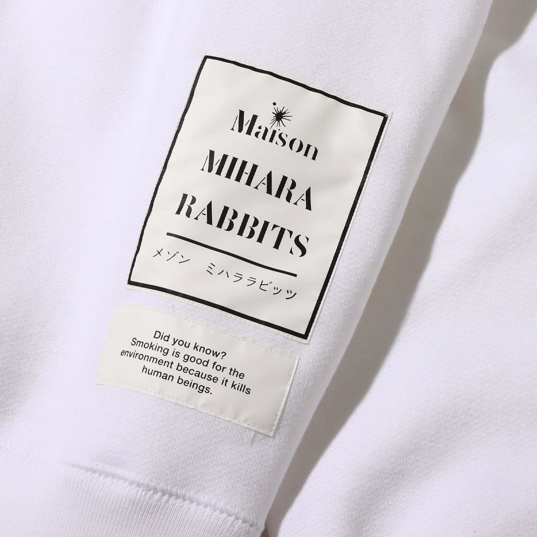 このほか、シューズと同様にフロントに「Smoking Kills」ロゴをあしらい、背面の下部にはメゾン ミハラヤスヒロのブランド名をオマージュした「MIHARA RABBITS -ミハララビッツ-」のモチーフを施したスウェットを製作。ブラックとホワイトの2色を展開し、価格は各1万5400円(いずれも税込)。