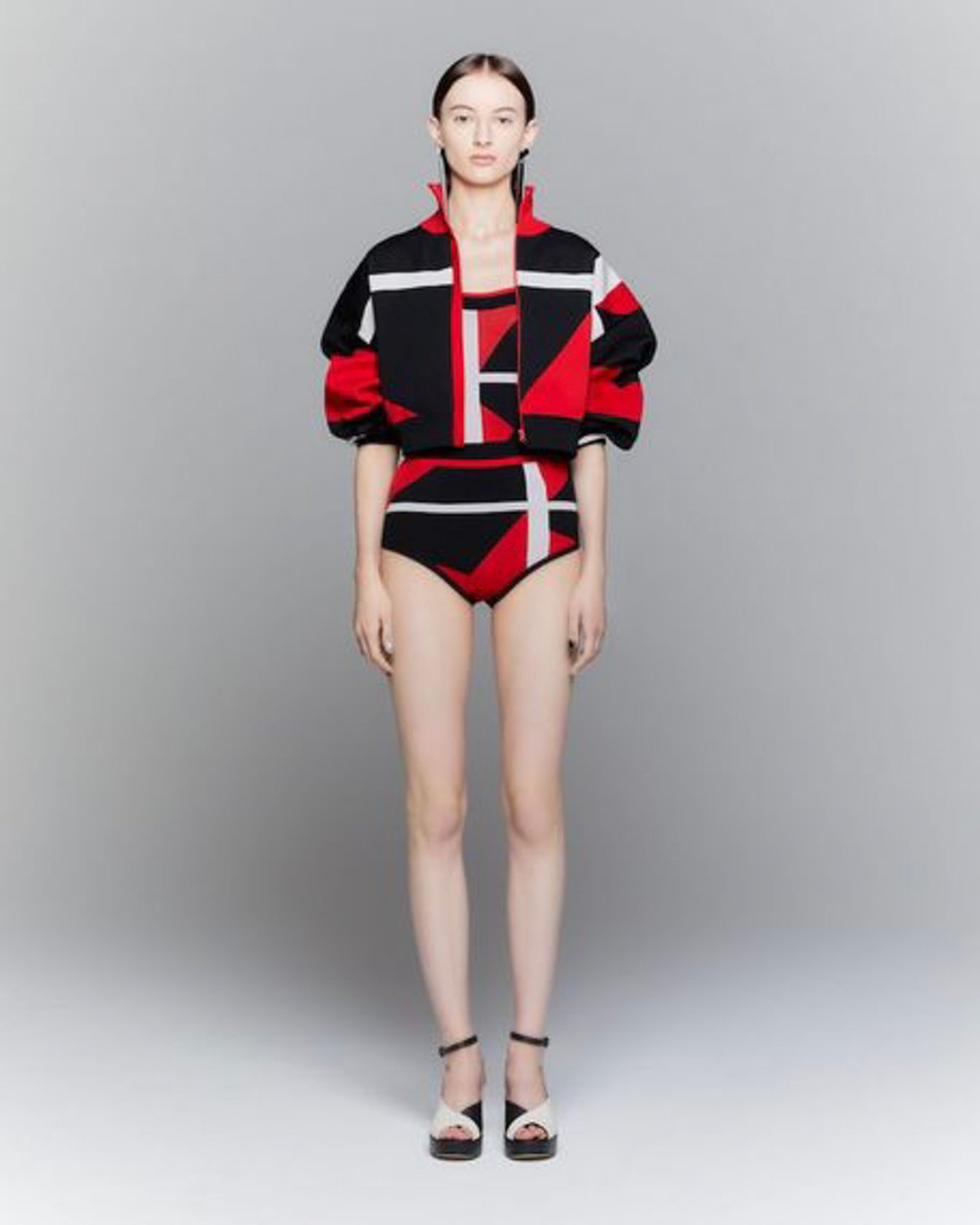 このコレクションは23年春夏コレクションに組み入れる。グラフィズム、カラーブロック、すっきりとしたカッティング、丈など、今年9月にミラノで発表した23年春夏コレクションと共通項を持つ。