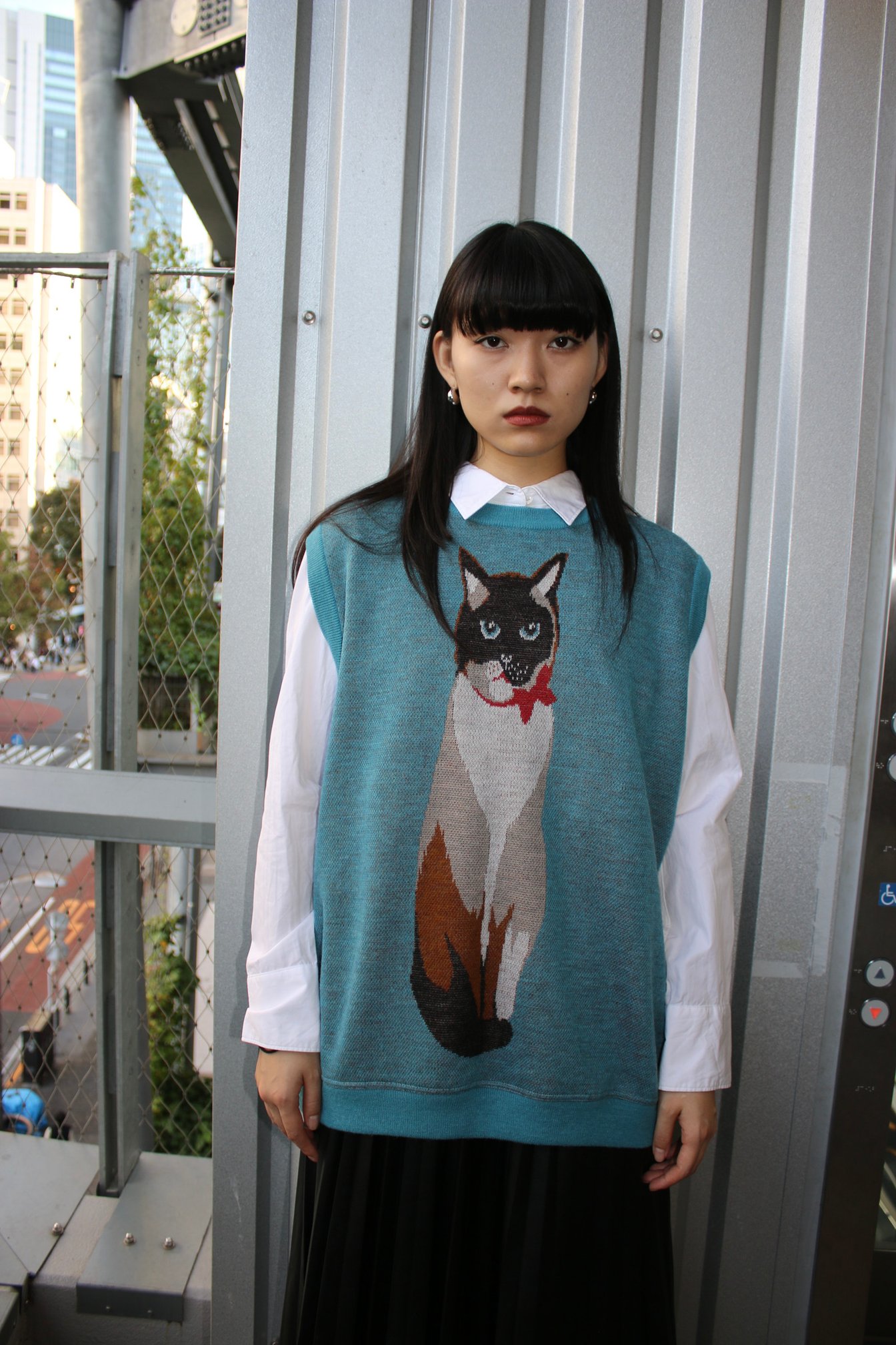 ひと目見て印象的な、猫の顔が大きく縫い付けられたデザインも、同社の事業部である製品部と素材部が連携した賜物だった。