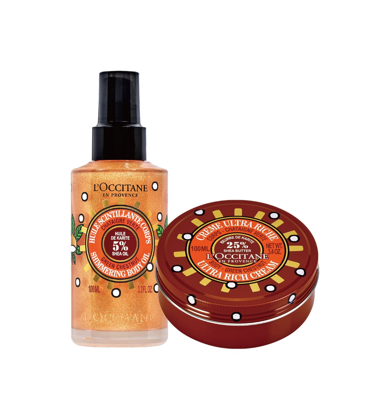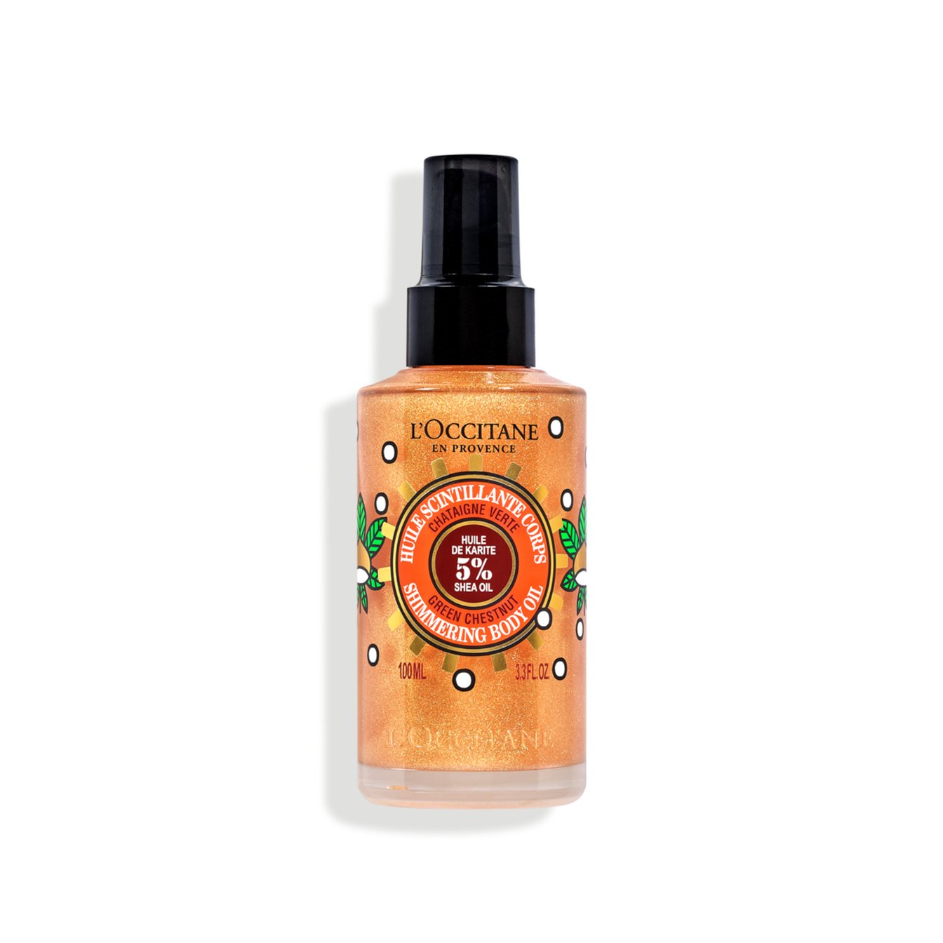 シアバター配合のボディオイル。さらりとした使い心地でオイルが髪や肌にツヤとうるおいを与えます。さりげないシマーリング効果で上品な仕上がりに。