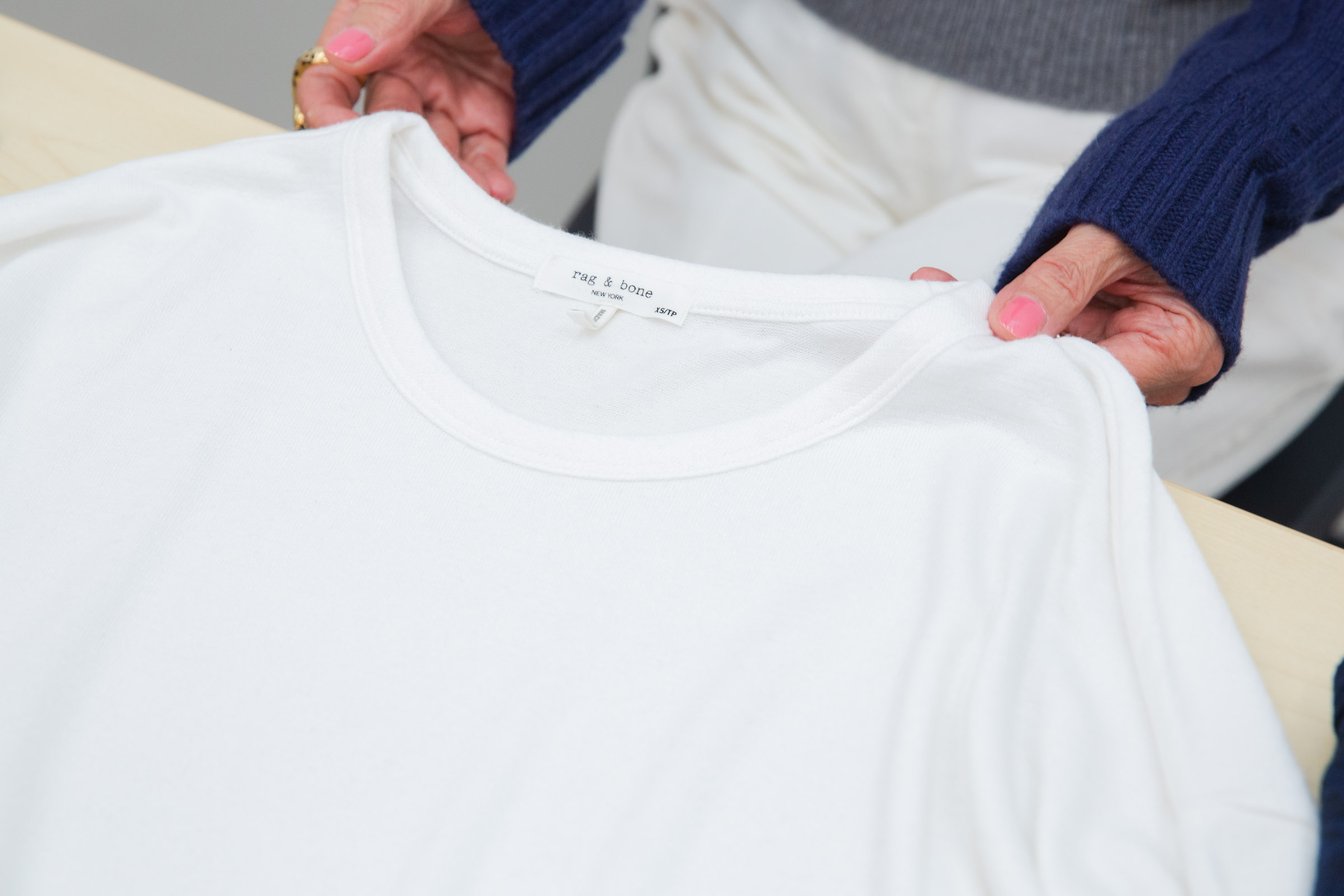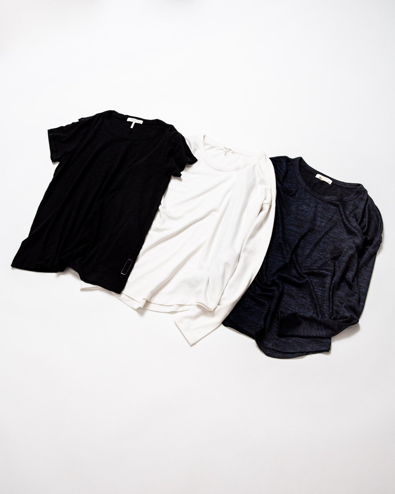 F:朝美さんのエッセンシャルアイテムは「ラグ & ボーン(rag & bone)」のカットソーだそうですね。長袖と半袖の両方をお持ちいただきましたが、こちらのお気に入りポイントは?