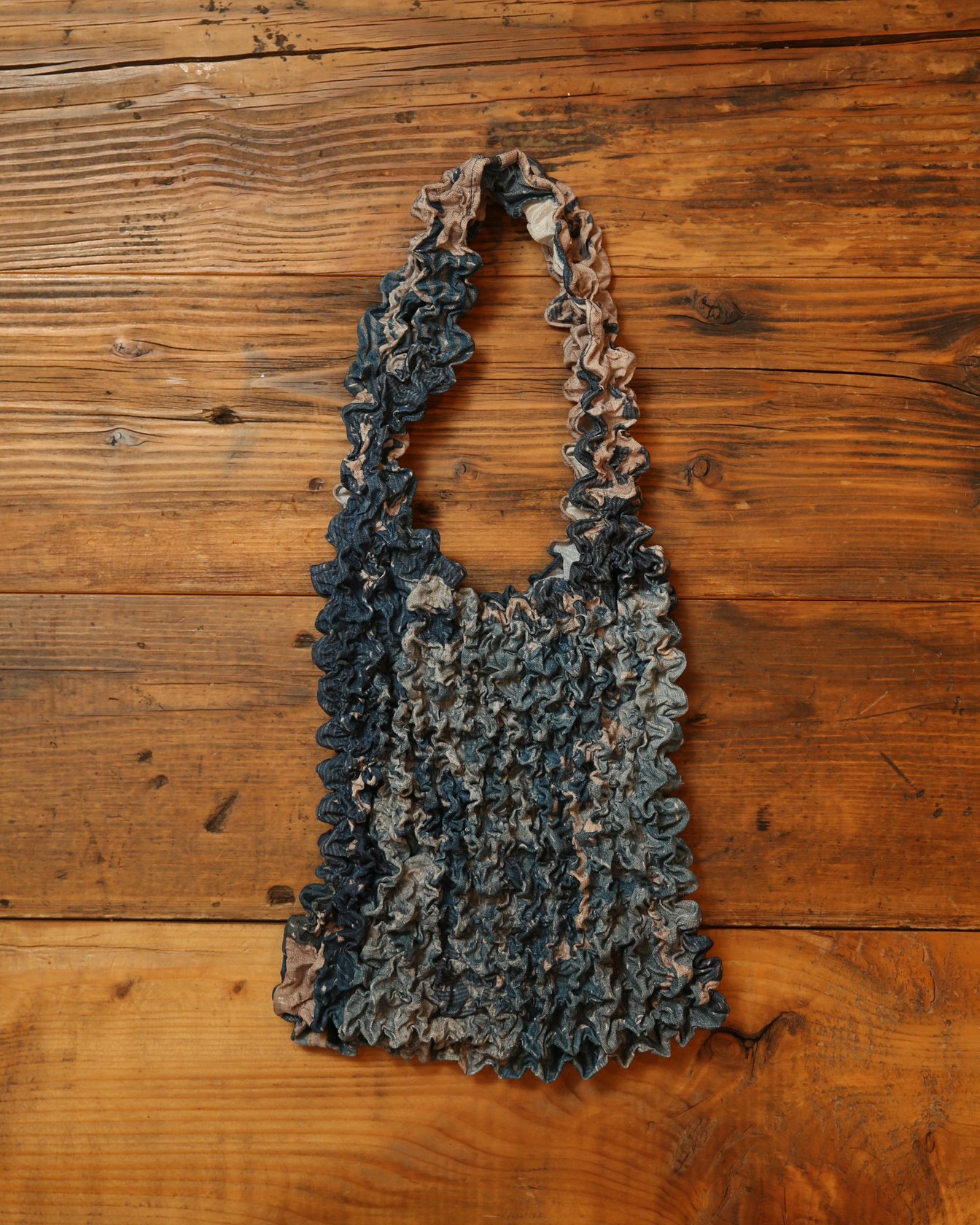 川谷:僕のクローゼットの中でも断トツで彩度があります(笑)。とはいえ、落ち着いている派手さですよね。「ファンダメンタル(FDMTL)」とは、僕がアートディレクターをしている「レーテンシー(LATENCY™)」とコラボをさせていただいて。当時、打ち合わせで伺った店舗で一目惚れして購入しました。ファンダメンタルはデニムなどのインディゴアイテムで知られているので、おそらくこの色もデニムの色なんだと思います。持っていると「これどこのバッグ?」とよく聞かれますね。